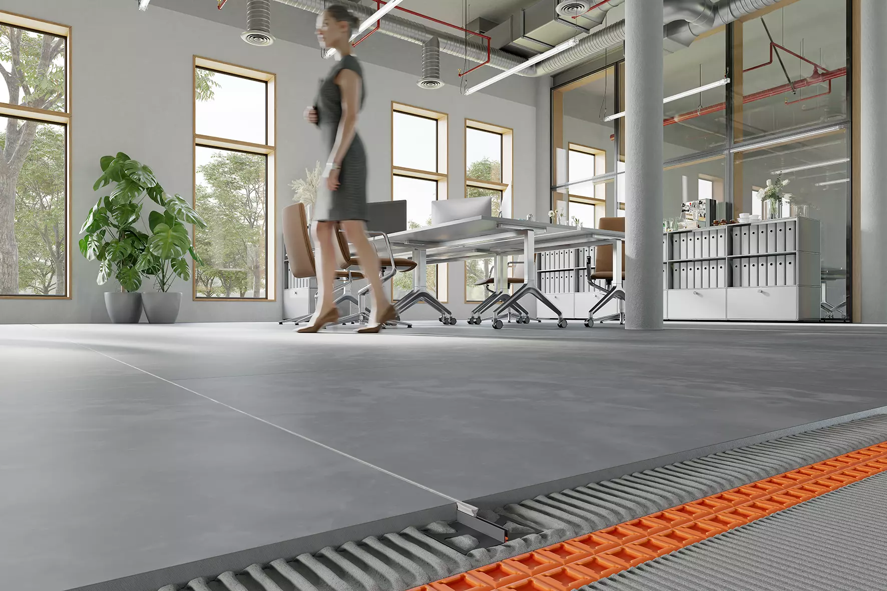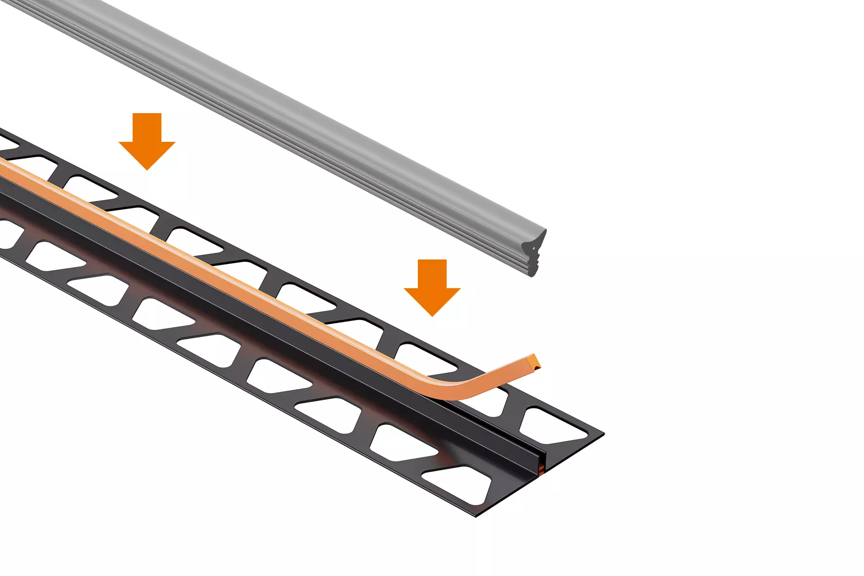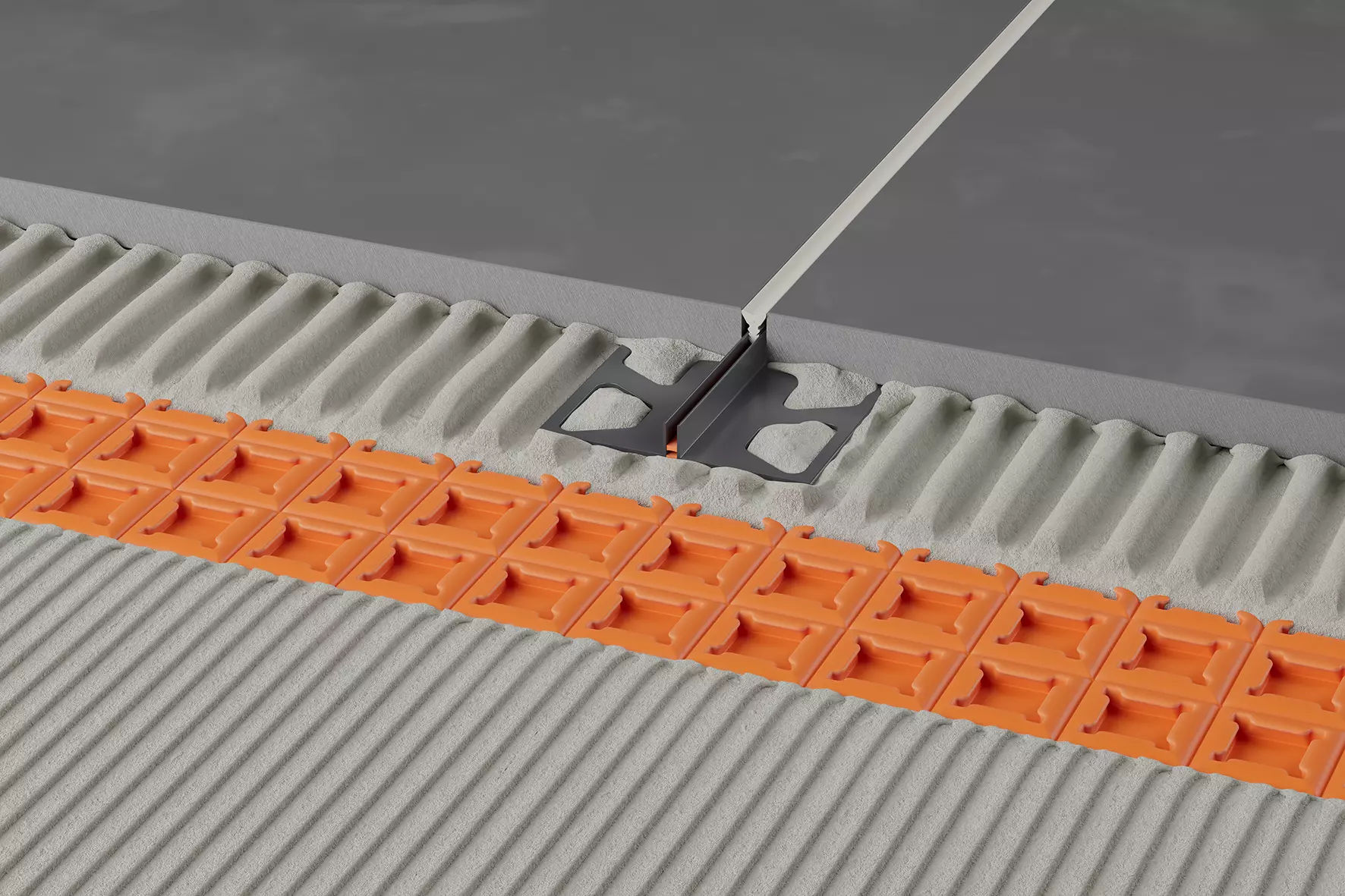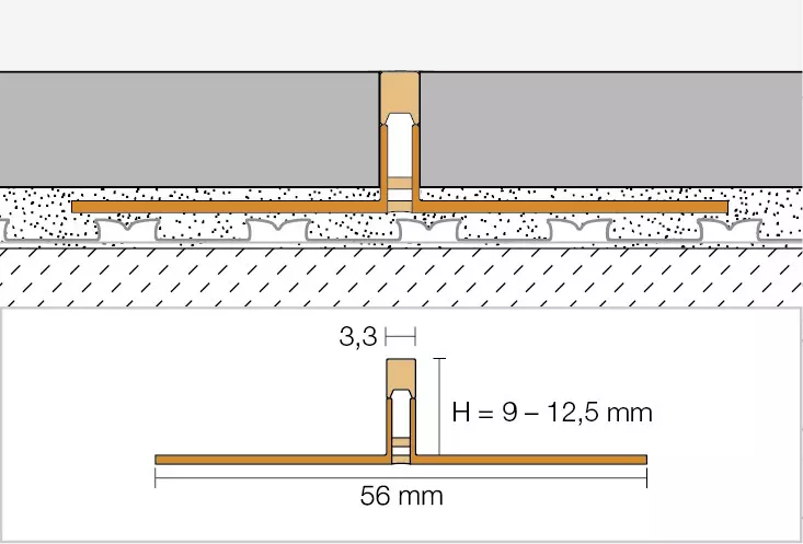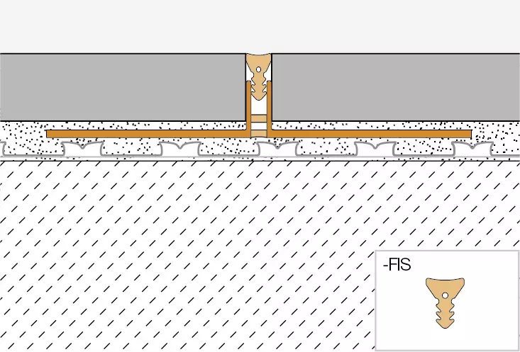 Schlüter-DILEX-FCS je úzký prefabrikovaný dilatační profil s po stranách lichoběžníkovitě perforovanými kotevními rameny z regenerátu tvrdého PVC. Spodní dilatační zóna a oranžový ochranný kryt jsou vyrobeny z měkkého CPE.