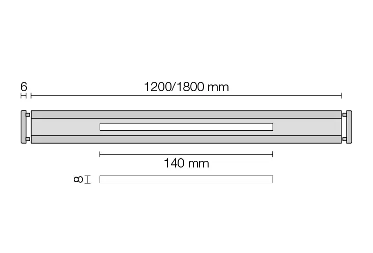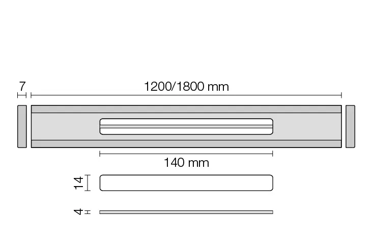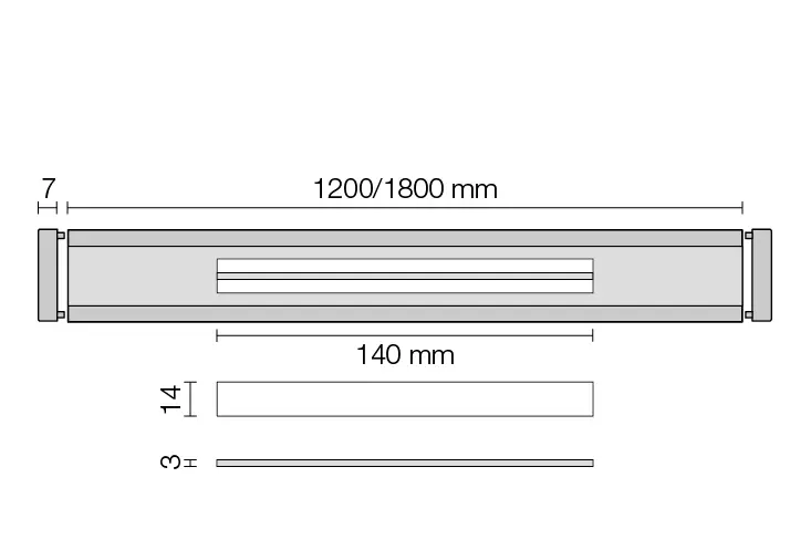 U širšího provedení má odtoková štěrbina šířku 14 mm rovněž při délce 140 mm. Štěrbina je vizuálně atraktivně překryta odnímatelnou lištou.