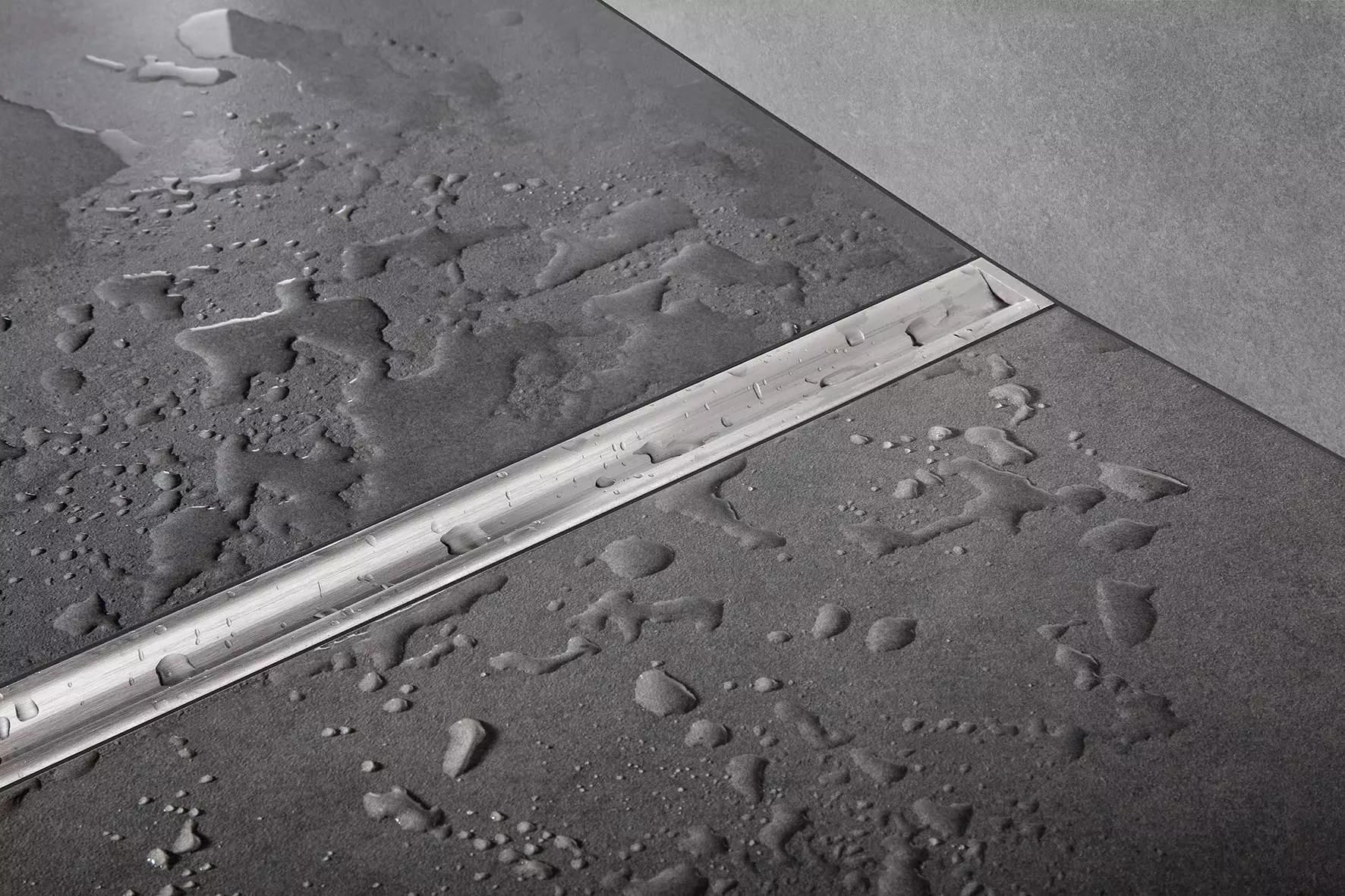 Schlüter-KERDI-LINE-VARIO COVE je variabilně zkrátitelný odvodňovací profil s dutým požlábkem. Je k dodání v provedení z kartáčované ušlechtilé oceli V4A nebo z lakovaného hliníku s povrchovou úpravou TRENDLINE a v délkách 120 cm a 180 cm.