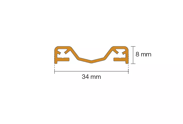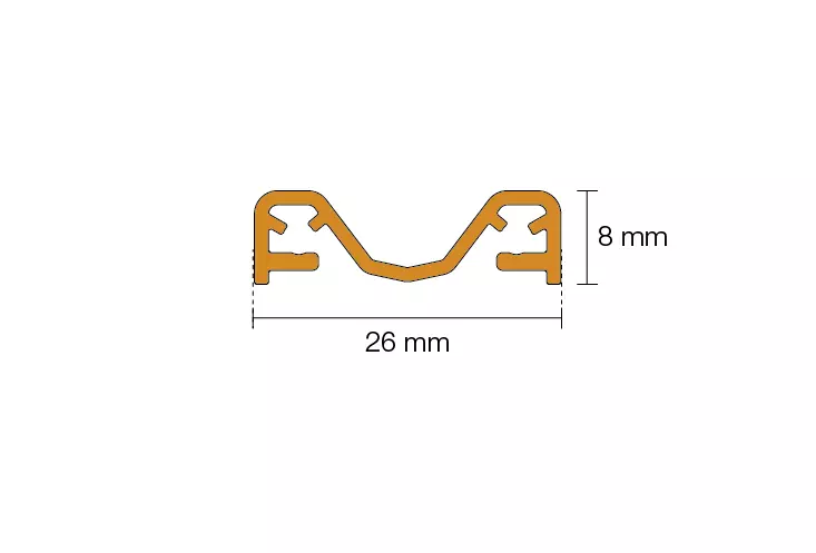 K dispozici jsou dvě šířky profilu, 26 mm a 34 mm. U úzkého provedení má odtoková štěrbina šířku pouze 8 mm a délku 140 mm.