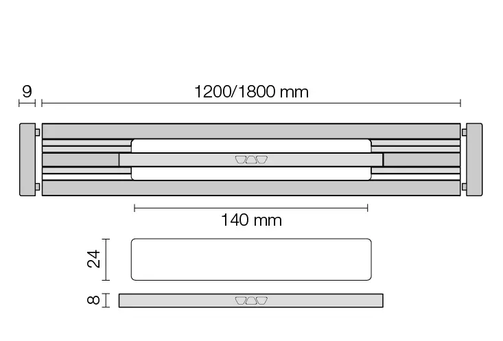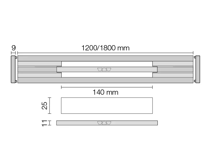 V hliníkovém provedení jsou k dispozici dvě šířky profilu 34 mm a 42 mm. U užšího provedení je středová odtoková štěrbina široká pouhých 14 mm a dlouhá 140 mm. U provedení širokého 42 mm je odtoková štěrbina široká 20 mm a dlouhá 140 mm. Díky tomu nabízí dostatečný prostor pro vložení volitelně dodávaného sítka na vlasy.