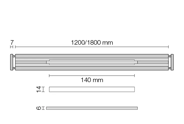U širšího provedení má odtoková štěrbina šířku 14 mm rovněž při délce 140 mm. Štěrbina je vizuálně atraktivně překryta odnímatelnou lištou.