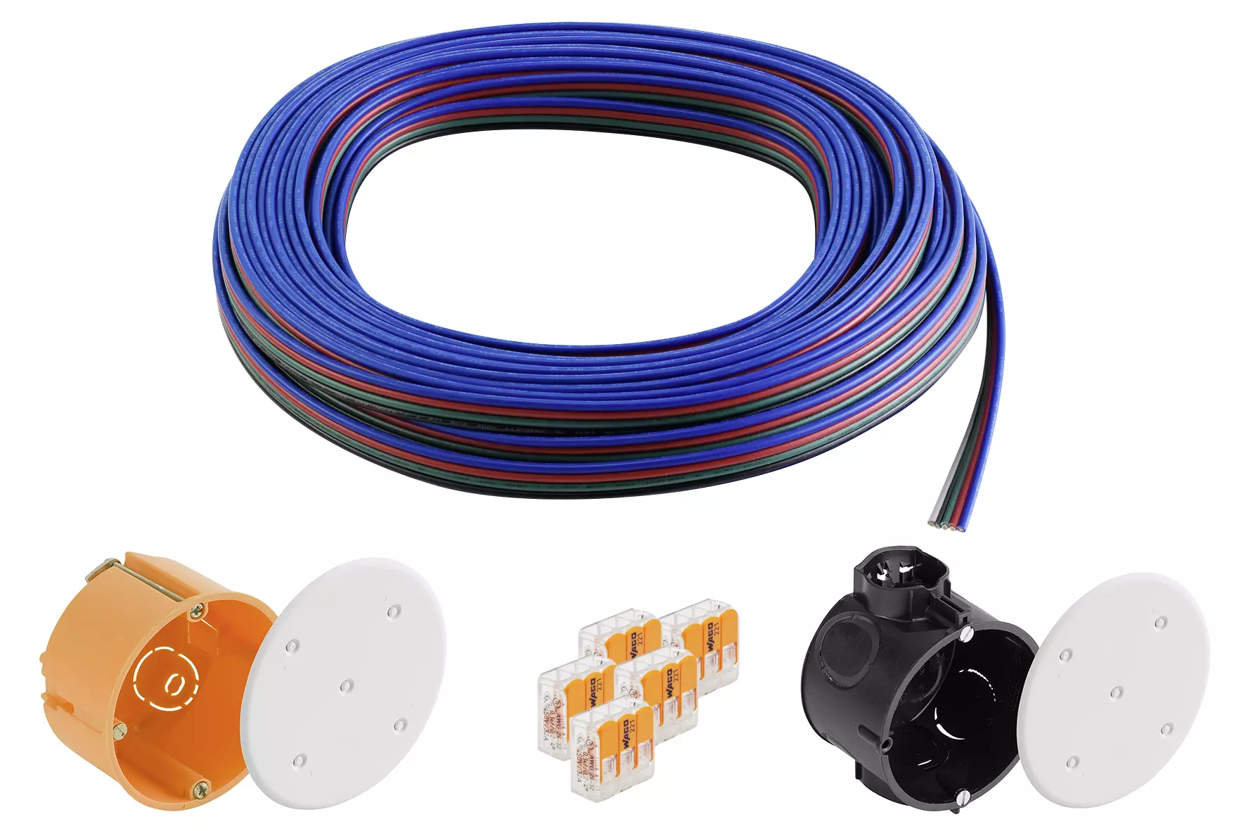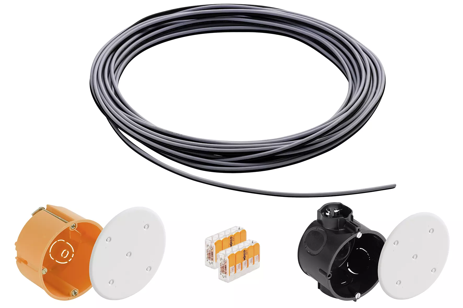 Schlüter-LIPROTEC-ZS obsahuje vše potřebné ke spojení instalací Schlüter-LIPROTEC se síťovým zdrojem a/nebo přijímačem. Praktická připojovací sada se dodává v provedení pro 2 žilová a 5 žilová připojení.