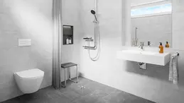 Nová oáza pohody samozřejmě musí být elegantní, moderní a zároveň stylová. Hahnovi měli nejrůznější přání: Sprchu v úrovni podlahy, energeticky úsporné podlahové vytápění, individuální umyvadlový stůl, praktický shoz na špinavé prádlo, elegantní osvětlení a mnoho dalšího.