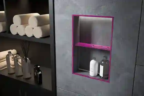 Oplev de mange muligheder for at bruge Schlüter-KERDI-BOARD til at skabe individuelt flisebelagte elementer, som ville være vanskelige at realisere med andre konventionelle byggeplader. Vi tilbyder også mulighed for at tilføje lasergravering til nogle af vores bruseafløb – og et udvalg af vores produkter kan bestilles i 190 eksklusive RAL-farver samt med dine ønskedesigns.