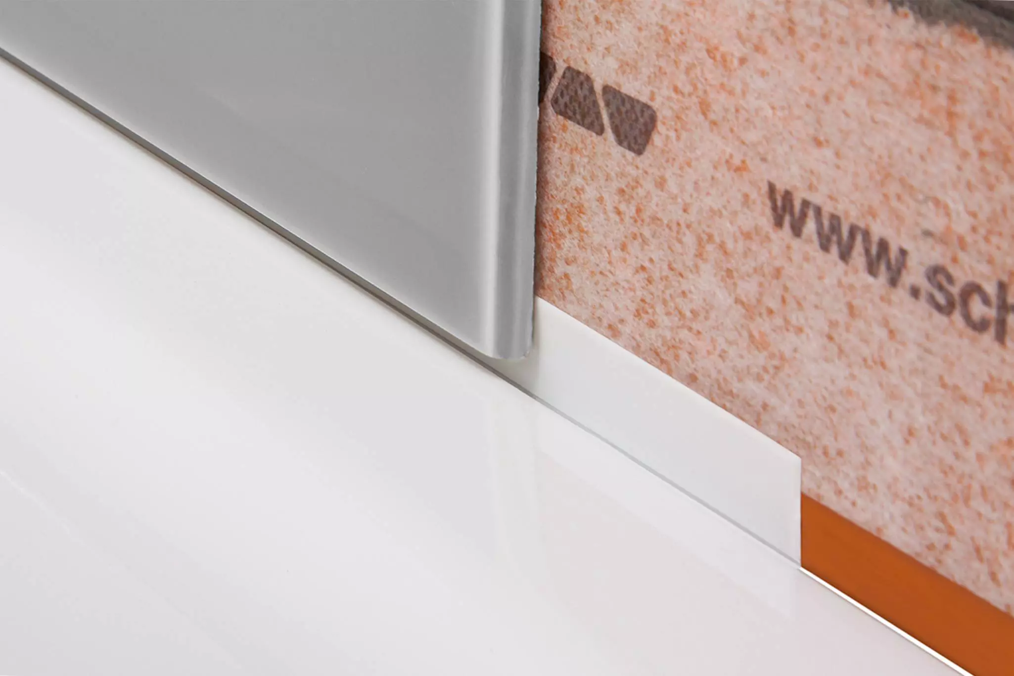 Ved en udskiftning af silikonefugen, f.eks. på kanten af badekarret eller brusenichen, skal du være forsigtig: Ved udkradsning af silikonelaget kan det underliggende tætningslag nemt blive beskadiget. For at forhindre dette tilbyder vi det ældningsbestandige og uforgængelige snitbeskyttelsesbånd Schlüter-KERDI-CP i forskellige længder. Den praktiske snitbeskyttelse af polypropylen kan du nemt måle ud og forfolde for så at indlejre den i den netop påførte monteringslim KERDI-FIX.