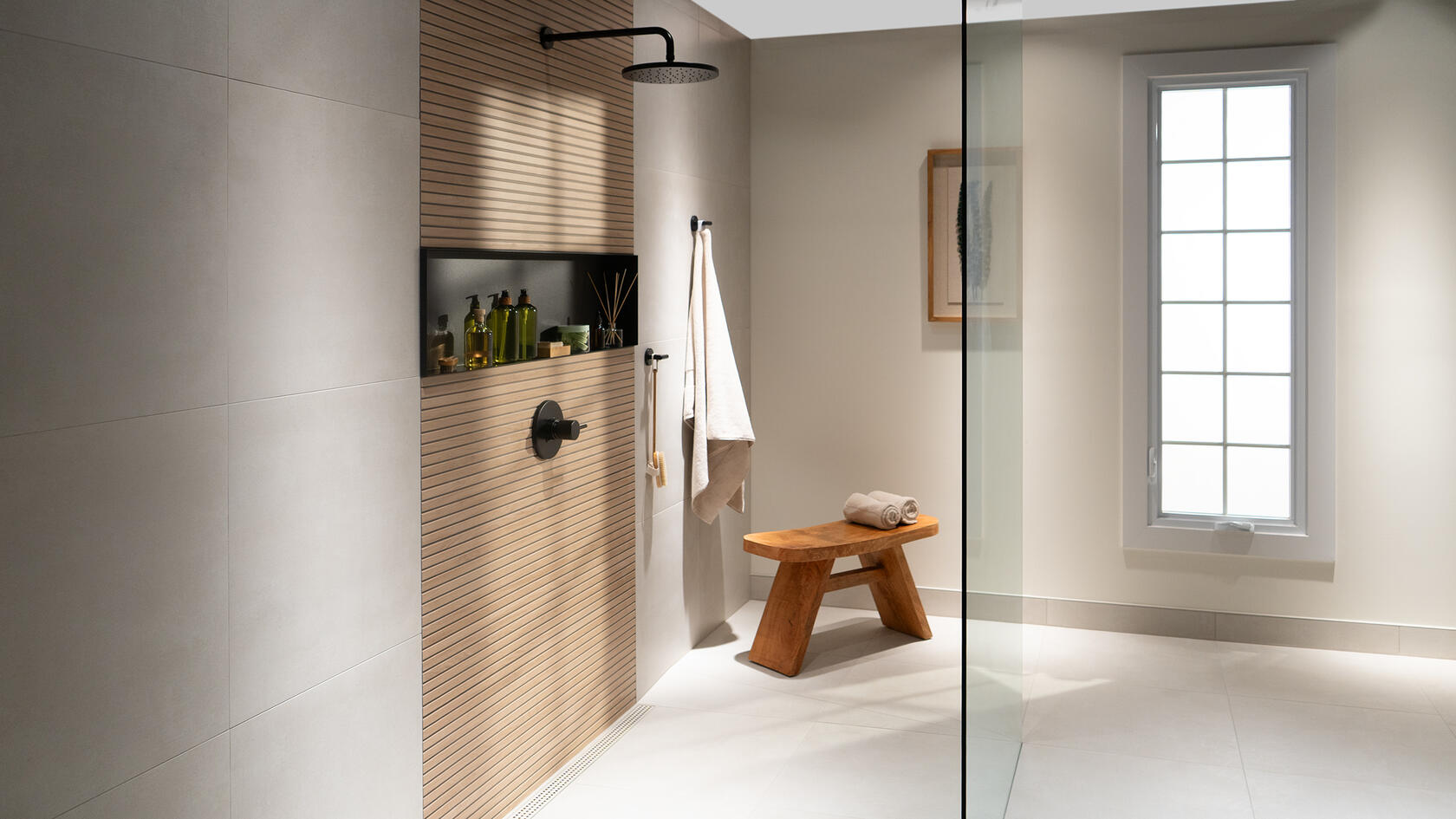 Stylish und funktional: Die vorgefertigten Einbauelemente Schlüter-DESIGN-NICHE aus pulverbeschichtetem Aluminium bieten eine ebenso praktische wie elegante Ablagemöglichkeit in gefliesten Wänden. Ob flächenbündig oder aus dem Belag herausragend eingebaut – in drei Abmessungen ermöglichen sie gestalterische Highlights im Wandbereich.