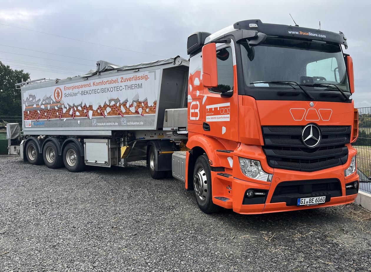 Der fällt positiv auf! Die Blaukat Estrich GmbH aus dem hessischen Fernwald hat einen ihrer Kipper im Schlüter- bzw. BEKOTEC-Design folieren lassen. Als qualifizierter BEKOTEC-SystemFachbetrieb trägt das Unternehmen die gute Zusammenarbeit zwischen Blaukat, Schlüter-Systems und der Reeh & Sohn GmbH & Co. KG in Herborn, auf deren Hausmesse der Truck seine Premiere feierte, mit dieser einzigartigen Gestaltung gut sichtbar nach außen.