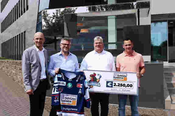 Im Winter war Schlüter-Systems bei zwei Heimspielen der Iserlohn Roosters „Sponsor of the Day“ und mit dem Firmenlogo auf den Trikots vertreten. 30 dieser raren Originaltrikots von den „Schlüter-Systems-Spieltagen“ konnten die Mitarbeiterinnen und Mitarbeiter des Unternehmens anschließend zum Vorzugspreis erwerben – bei über 300 Interessierten musste schließlich das Los über einen Kauf entscheiden.