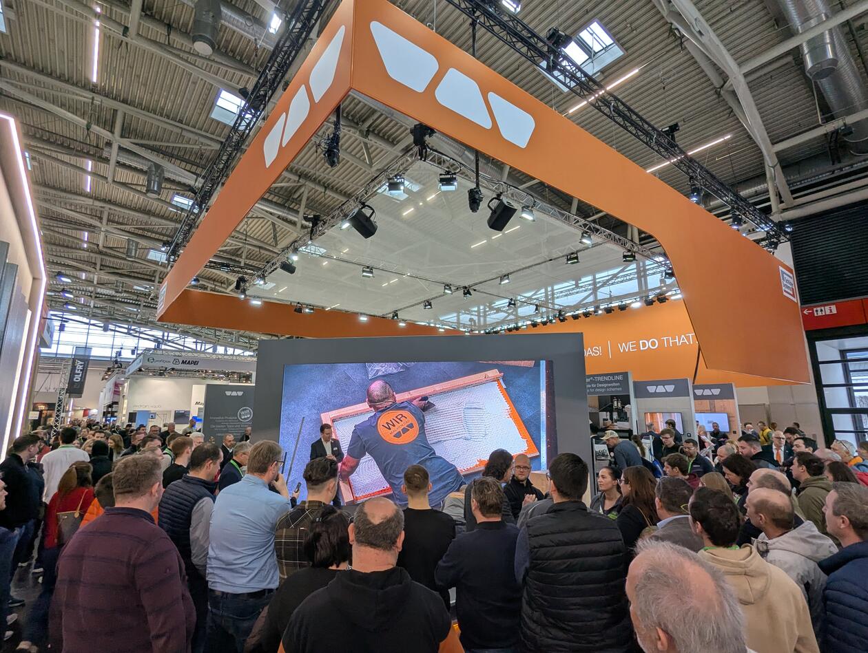 Ob Wandgestaltung mit attraktiven Nischen, das Bauen individueller Waschtische, die praktische und sichere Verbundentkopplung oder eine energiesparende Fußbodenheizung mit Schlüter-BEKOTEC-THERM: Die täglichen Praxisvorführungen auf der Bühne am Schlüter-Stand zogen immer ein großes Publikum an. Die Profis der Schlüter-WorkBox zeigten kompakt und informativ, wie die Produkte verwendet werden und welche Vorteile Verarbeiter und Verbraucher dadurch haben.