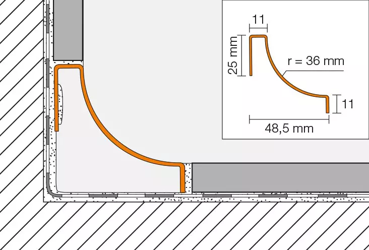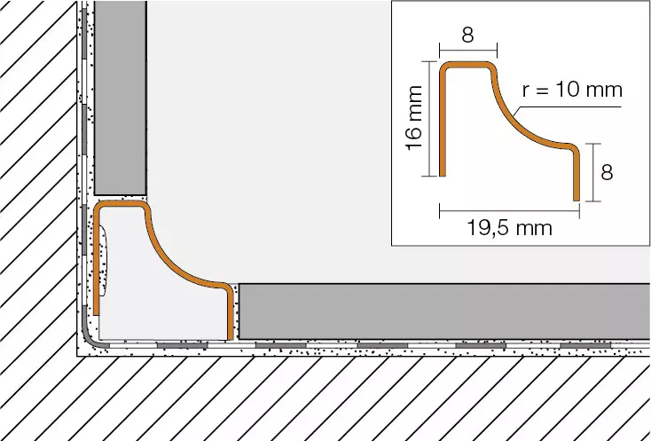Das Profil besteht aus Edelstahl V2A (Werkstoff-Nr. 1.4301 = AISI 304) oder V4A (Werkstoff-Nr. 1.4404 = AISI 316L), wird im Rollenprofilierverfahren aus Bandblechen geformt und im Bereich der Befestigungsschenkel trapezförmig gelocht. Die Sichtflächen des Profils sind mit einer Schutzfolie überzogen. Das Profil ist mechanisch hoch belastbar und besonders geeignet für Anwendungsbereiche, in denen es auf Beständigkeit gegen Chemikalien und Säuren ankommt, z. B. in der Lebensmittelindustrie, in Brauereien, Molkereien, Großküchen und Krankenhäusern sowie auch im privaten Wohnbereich.