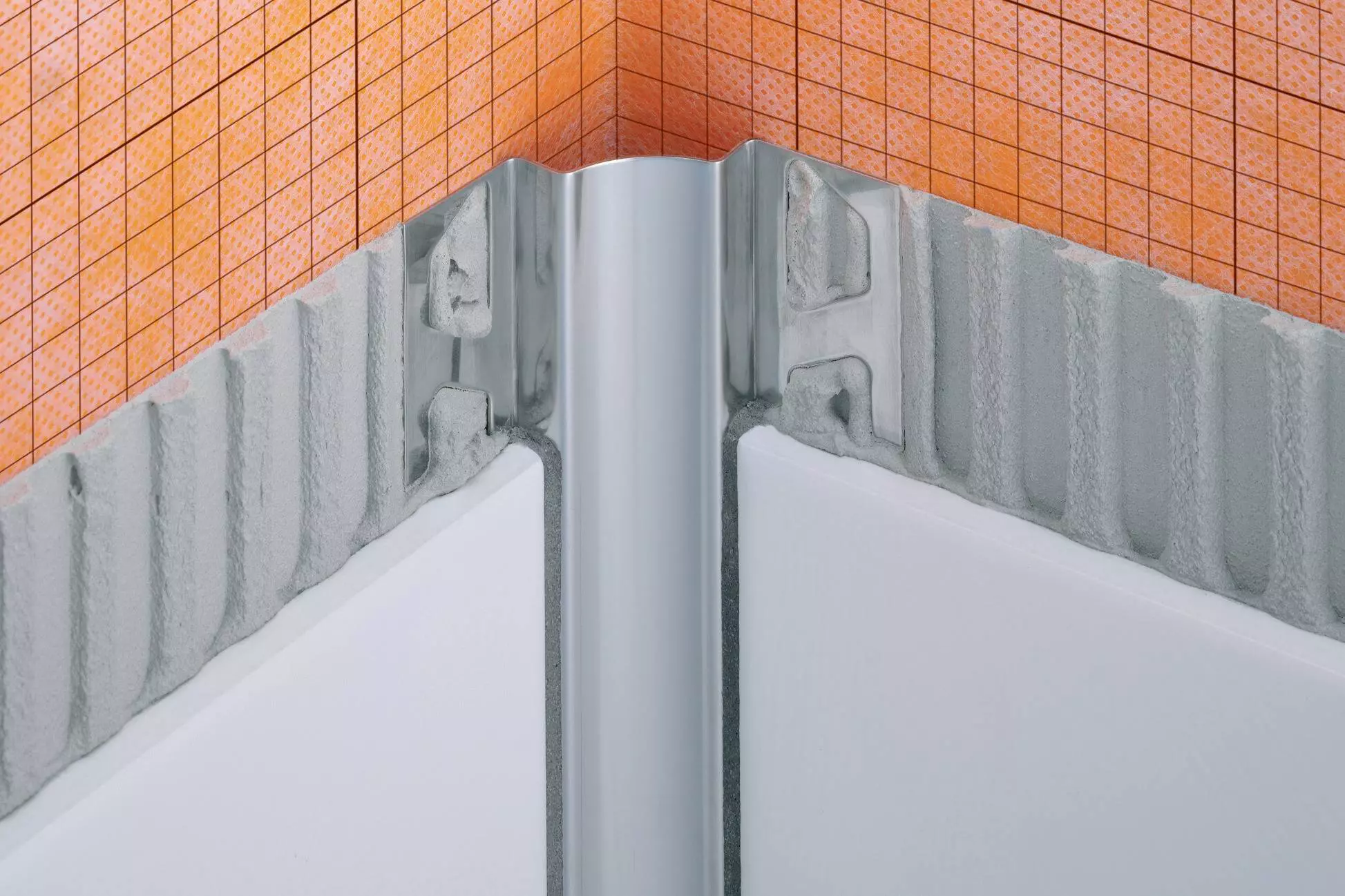 Der Kontakt mit anderen Metallen wie z. B. normalem Stahl ist zu vermeiden, da dies zu Fremdrost führen kann. Dies gilt auch für Werkzeuge wie Spachtel oder Stahlwolle, um z. B. Mörtelrückstände zu entfernen. Im Bedarfsfall empfehlen wir die Verwendung der Edelstahl-Reinigungspolitur Schlüter-CLEAN-CP.