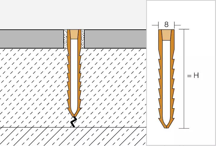 DILEX-MOP kann auch in nach­träglich eingeschnittene Fugen eingeschlagen oder in breiter ausgeschnittenen Fugen z. B. bei Sanierungen eingesetzt werden, wobei der seitlich verbleibende Fugen­raum mit Fugenmaterial evtl. auch Epoxidharz sorg­fältig ausgefüllt werden muss.