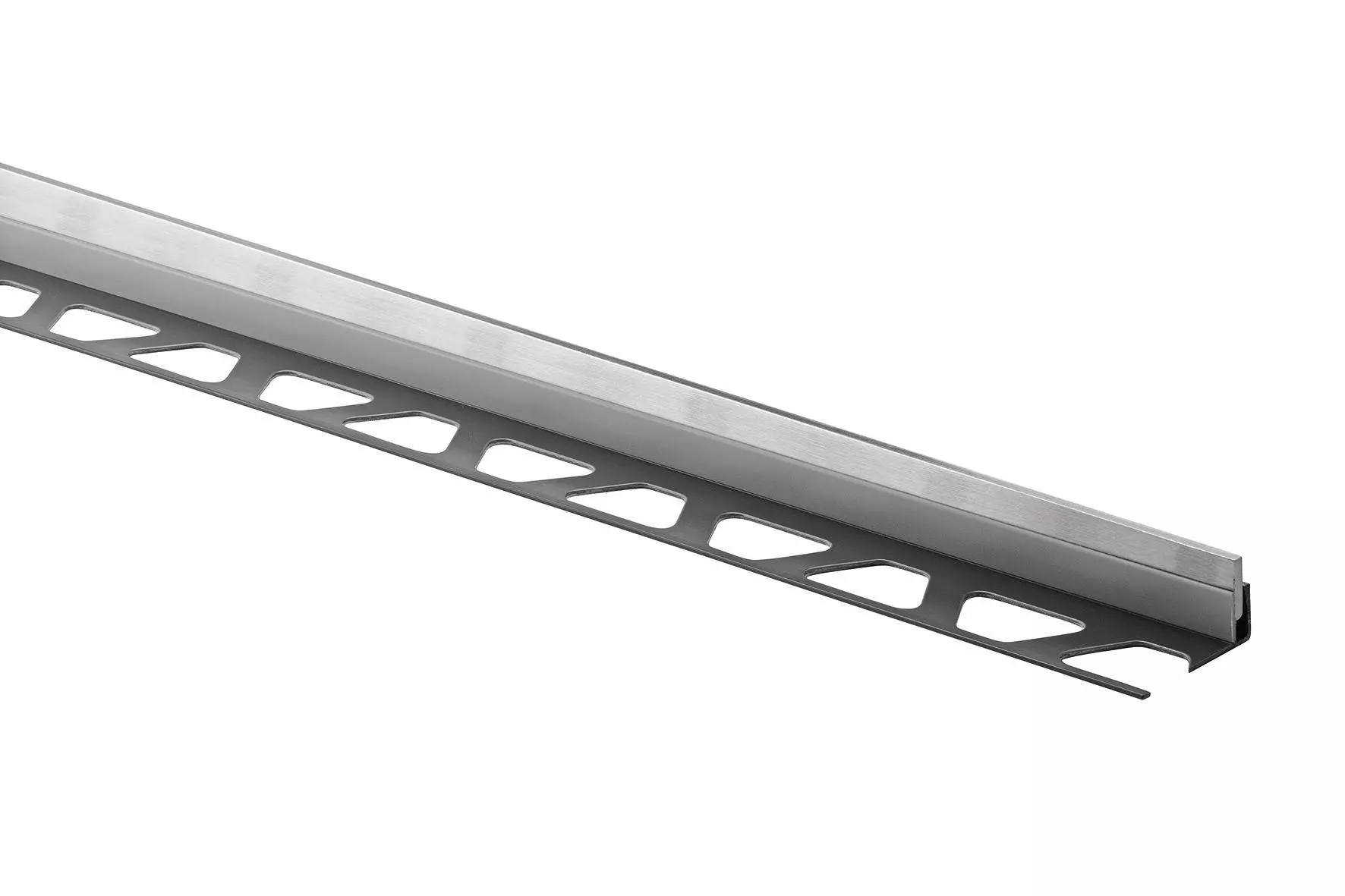 Entdecken Sie unsere Systemlösungen für bodengleiche Duschen mit Linienentwässerung! Der zweiteilige Gefällekeil Schlüter-SHOWERPROFILE-S besteht zum einen aus Edelstahl V4A, wahlweise mit gebürsteter Sichtfläche oder hochwertiger Pulverbeschichtung, mit 2 % Gefälle, womit sich die seitlichen Wangen in Ihrer bodenebenen Dusche zuverlässig verkleiden lassen. Dieses Profil ist rückseitig mit einem Vlies zur Verankerung im Fliesenkleber ausgestattet.