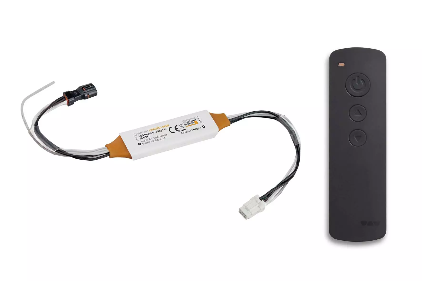 LIPROTEC-PEBR kommt mit Plug & Play-Ausführungen, die für den Einsatz mit dem LIPROTEC-EASY-System in der CLASSIC-Variante vorgesehen sind. Die sehr geringen Abmessungen des Bluetooth-Receivers ermöglichen einen platzsparenden Einbau. Die Fernbedienung lässt sich in der mitgelieferten Wandhalterung optimal verstauen.
