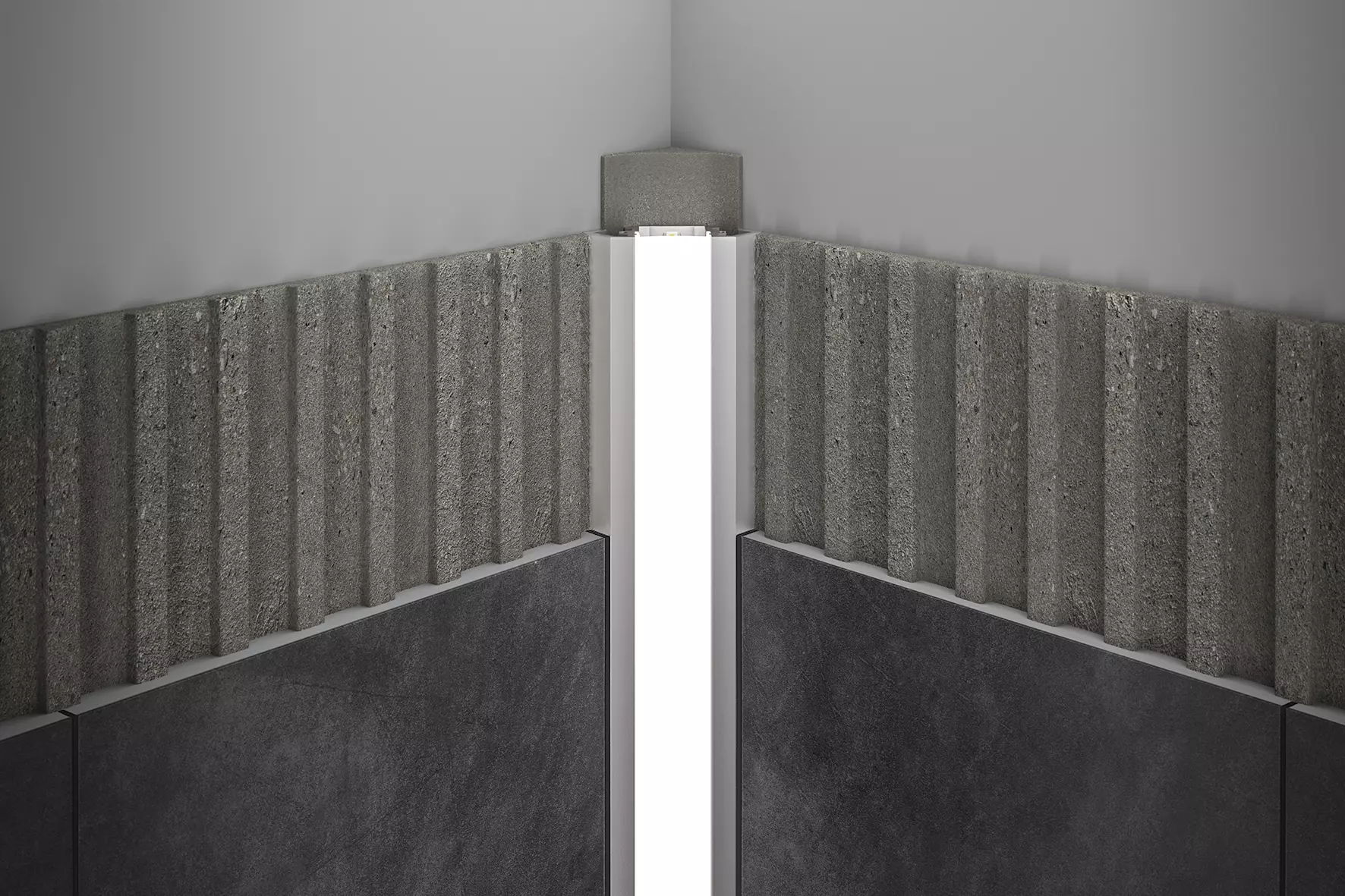 Deshalb sind Mörtel- oder Fugenmaterial an Sichtflächen sofort zu entfernen und frisch verlegte Beläge nicht mit Folie abzudecken. Das Profil ist vollflächig in die Kontaktschicht zur Fliese einzubetten, damit sich in Hohlräumen kein Wasser ansammeln kann.