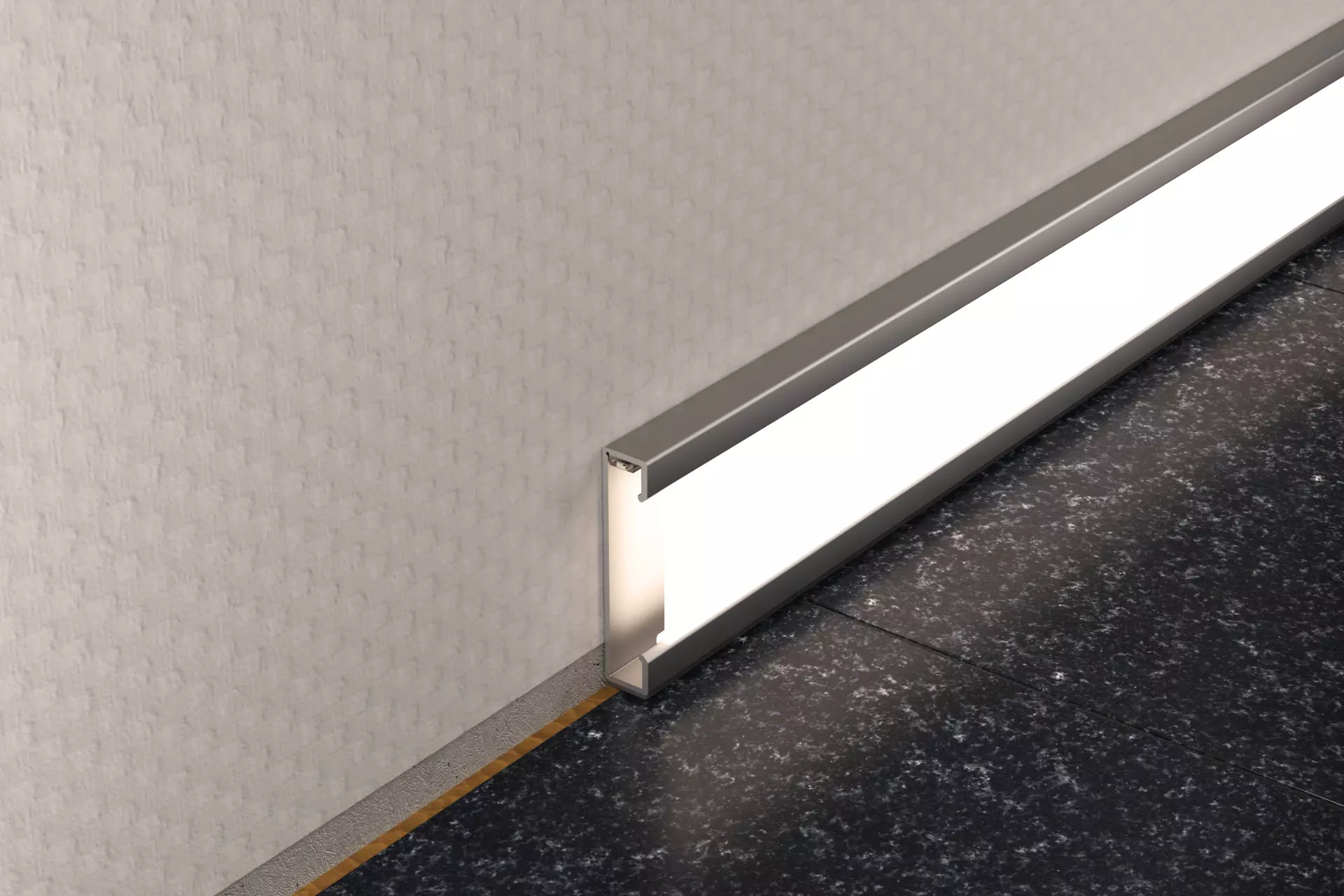 Schlüter-DESIGNBASE-QD-AE /-AEEB (Aluminium eloxiert): Das Aluminium weist eine durch die Eloxalschicht veredelte Oberfläche auf, die sich im üblichen Einsatz nicht mehr verändert.