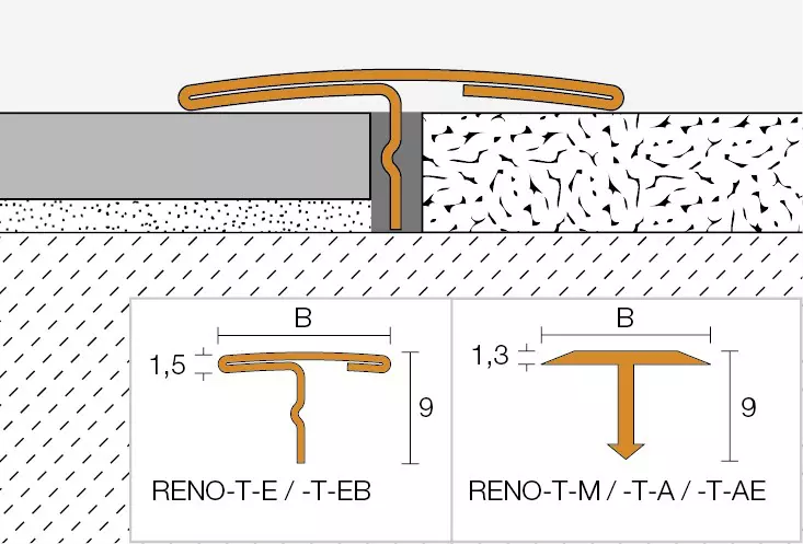 Schlüter-RENO-T-E Profile haben unbehandelte Oberflächen, welche fertigungsbedingte durchgehende Linien auf der Sichtfläche mit schwankender Intensität aufweisen. Bei optisch höherer Anforderung steht mit Schlüter-RENO-T-EB eine nachbehandelte, hochwertige Oberfläche zur Verfügung.