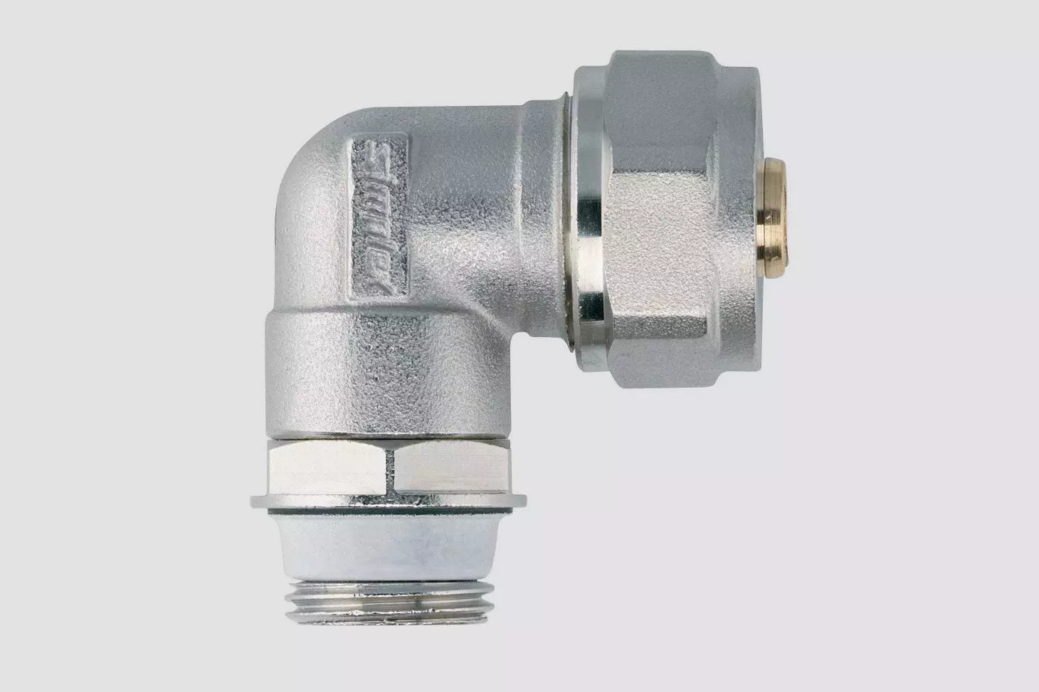 Schlüter-BEKOTEC-THERM-AW ist ein aus vernickeltem Messing gefertigter Anschlusswinkel, der zum Anschluss der Heizrohre Schlüter-BEKOTEC-THERM-HR für 14 oder 16 mm Durchmesser dient. Der Anschlusswinkel hat ein 1/2″ (DN 15) selbstdichtendes Außengewinde und eine 3/4″ (DN 20) Klemmverschraubung. Heizrohre mit 10 oder 12 mm Durchmesser können Sie mit Hilfe der Klemmringverschraubung Schlüter-BEKOTEC-THERM-KV befestigen.