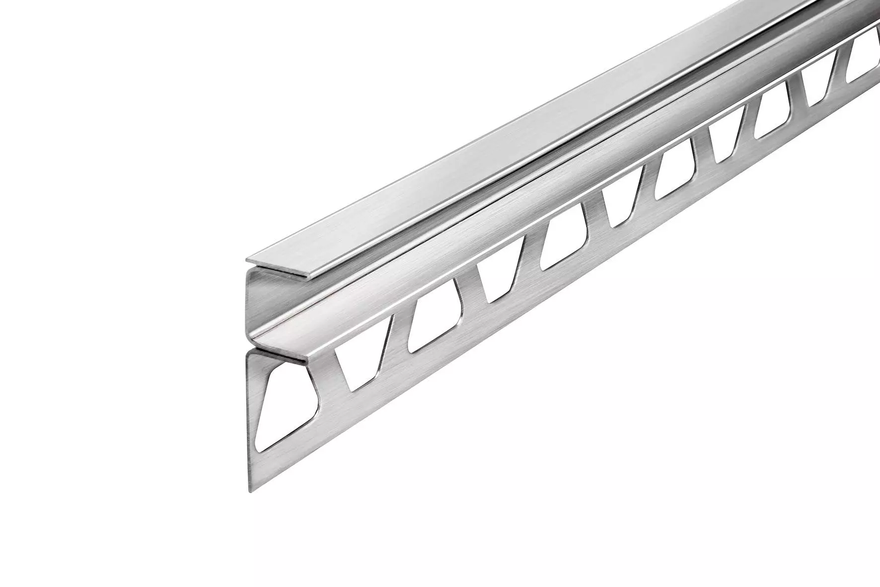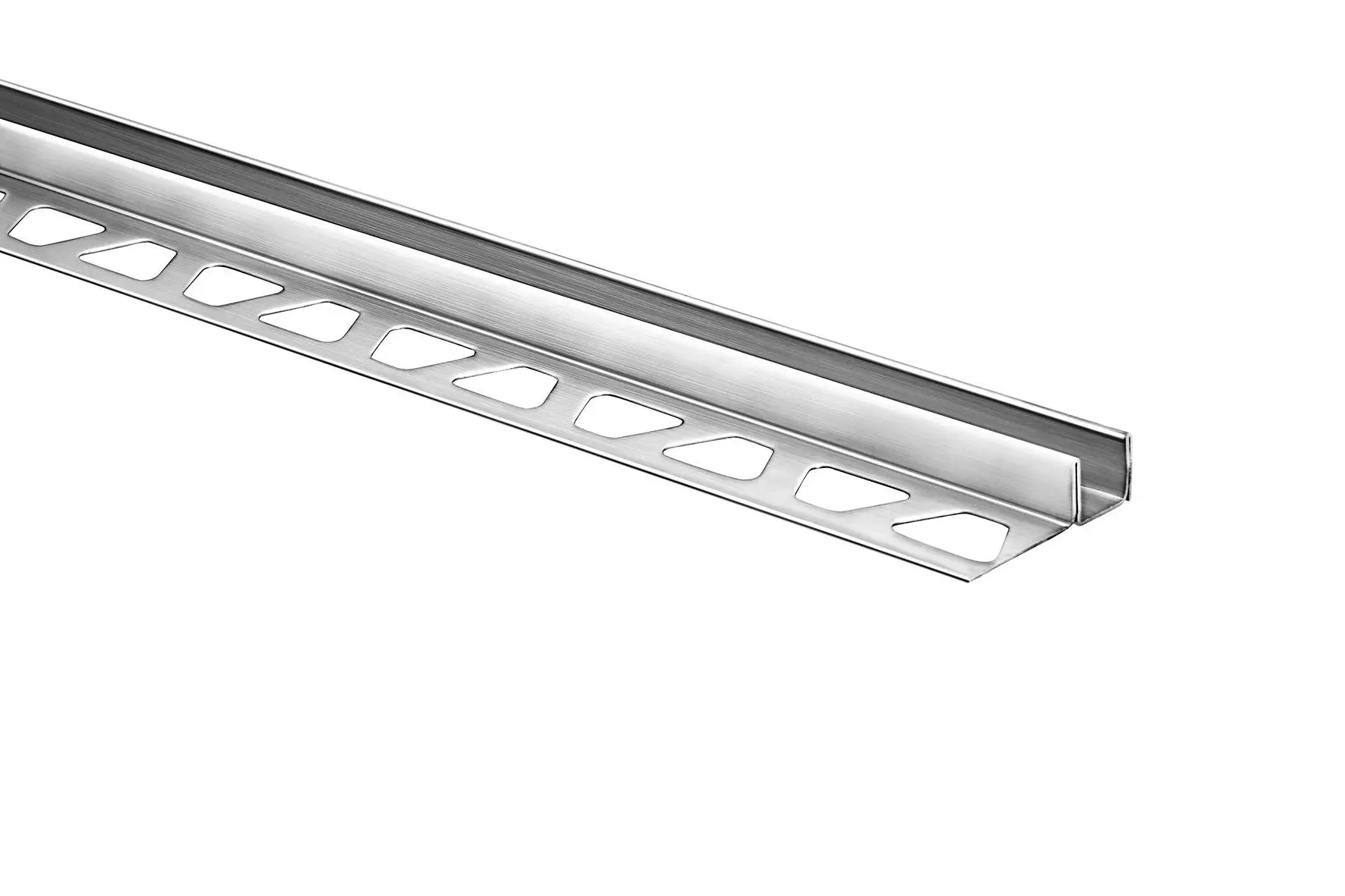 Schlüter-DECO-SG is a high-quality, decorative, functional profile in brushed stainless steel (V4A) or anodised aluminium enabling joints to be created in tiled surfaces and holding glass elements. The profile geometry can be used to create a shadow joint, resulting in visually appealing indoor wall coverings.