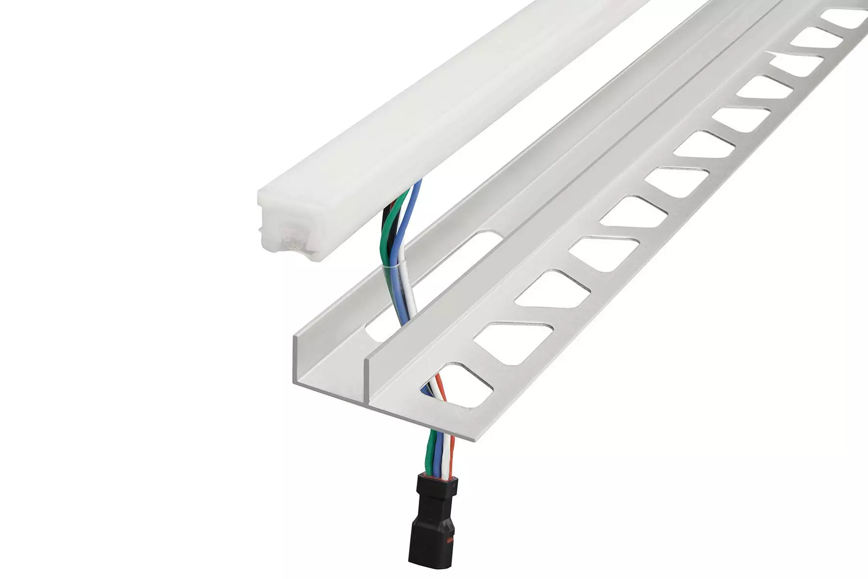 The Schlüter-LIPROTEC-LLPM illumination set is a pre-assembled LED module made from a flexible, encapsulated LED strip with homogeneous light distribution and DECO-SG as the carrier profile (see product data sheet 15.8 Schlüter-LIPROTEC-LLPM/LLP/LLPE).