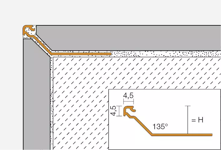 Schlüter-FINEC-SQ-TS is a decorative finishing profile made of aluminium with a special textured coating for the edges of tile coverings. The high-quality profile creates an elegant, slimsquare corner detail with a 4.5 mm visible surface. Especially suitable for wall coverings, skirtings and natural stone coverings, FINEC-SQ-TS is available in heights of 11, 12.5 and 15 mm.