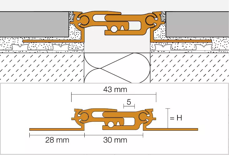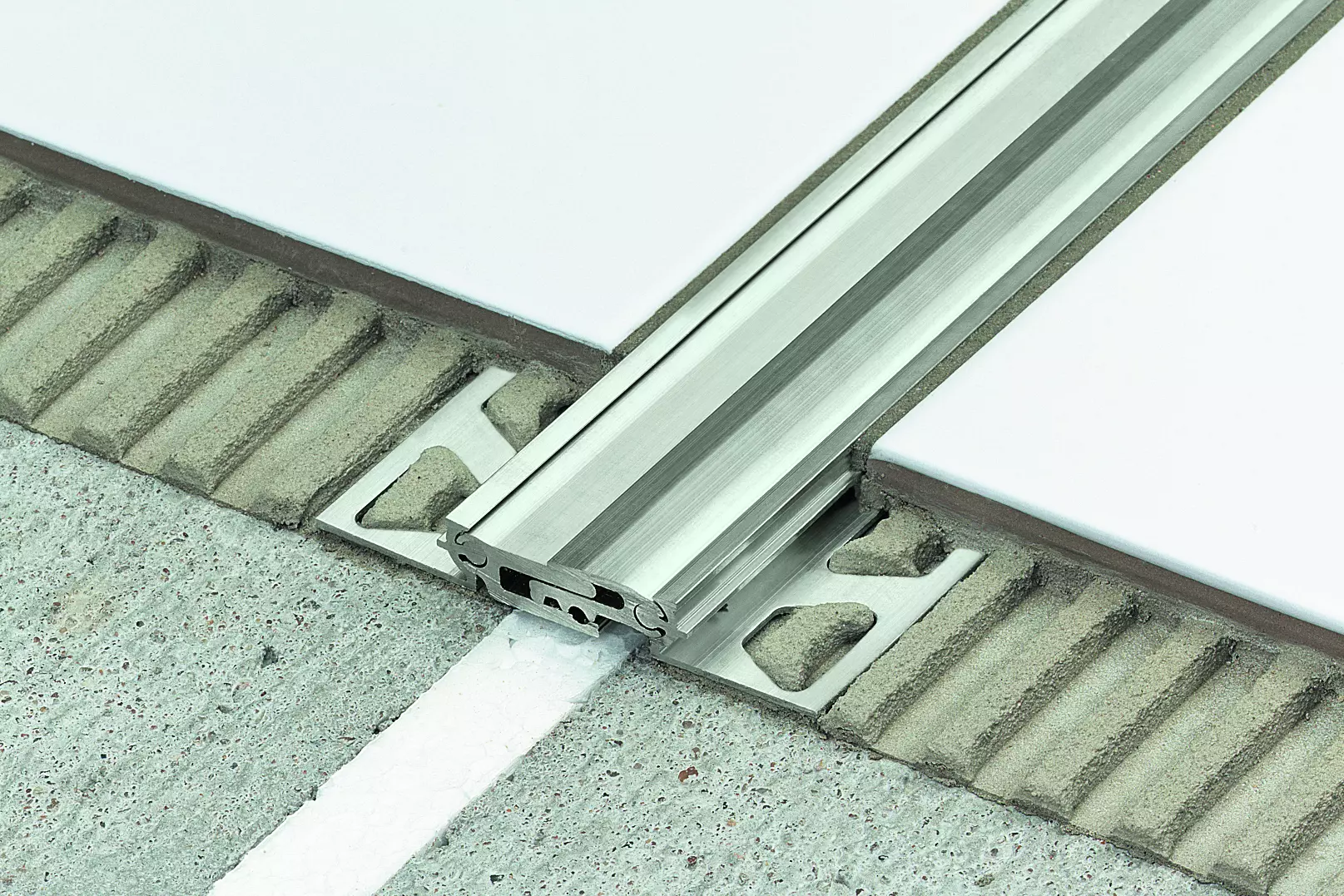 Schlüter-DILEX-BT is made of aluminium and must be tested to verify its suitability if chemical exposure is expected. Aluminium is sensitive to alkaline media. Cementitious materials, in conjunction with moisture, become alkaline. Since aluminium is sensitive to alkaline substances, exposure to the alkali (depending on the concentration and time of exposure) may result in corrosion (aluminium hydroxide formation). Adhesive or grout residue must therefore be removed immediately from visible surfaces.