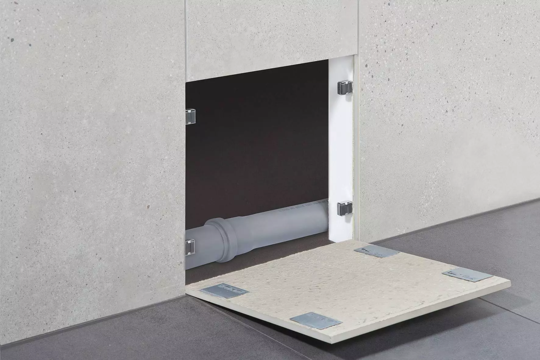 Schlüter-REMA is suitable for creating access panels in tiled walls. If the openings are much larger than 30 x 30 cm, it may be helpful to use two additional magnets.
