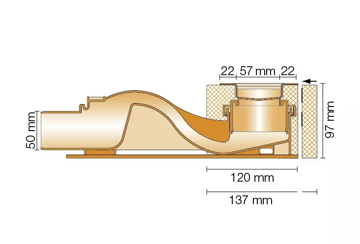 Schlüter-KERDI-LINE-GTO is an odour trap with a silicone dry flap. It can be installed instead of a two-piece odour trap and prevents odours in situations when infrequent use of the drain (in guest bathrooms, holiday homes etc.) could result in the water in the odour trap unit from evaporating. With a drain capacity of 0.45 l/s (according to DIN EN 1253), the waterless odour seal can also permanently replace the standard odour trap unit, for example to prevent inadequate venting in the drain system (cannot be combined with KERDI-LINE-F / -VS / -VOS).