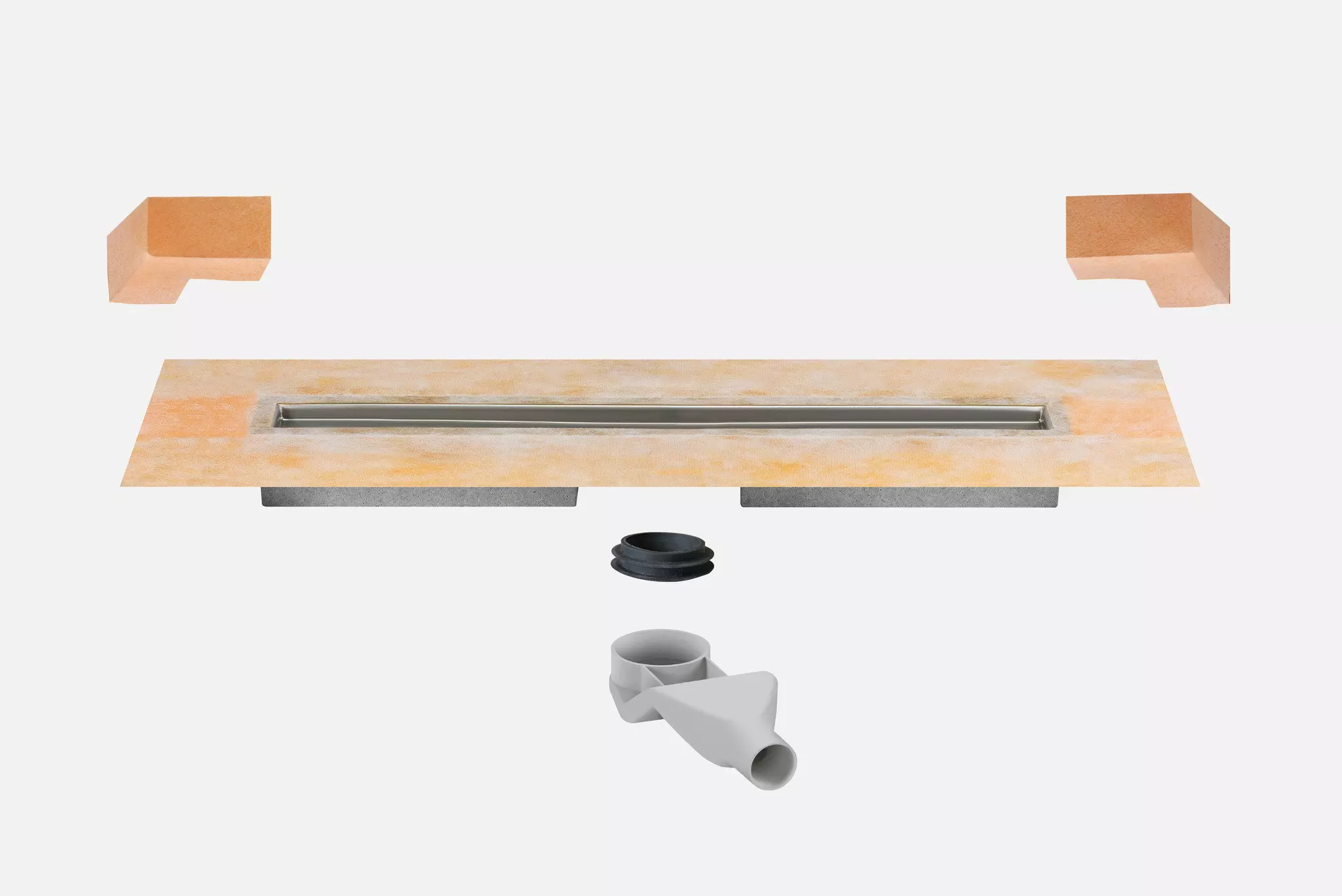 Schlüter-KERDI-LINE is a multi-piece, linear drainage system for creating floor-level showers with ceramic tiles, natural stone or coatings.