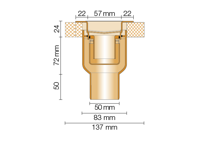 Schlüter-KERDI-LINE-GTO is an odour trap with a silicone dry flap. It can be installed instead of a two-piece odour trap and prevents odours in situations when infrequent use of the drain (in guest bathrooms, holiday homes etc.) could result in the water in the odour trap unit from evaporating. With a drain capacity of at least 0.4 l/s (according to DIN EN 1253), the waterless odour seal can also permanently replace the standard odour trap unit, for example to prevent inadequate venting in the drain system (cannot be combined with KERDI-LINE-F / -VS / -VOS).