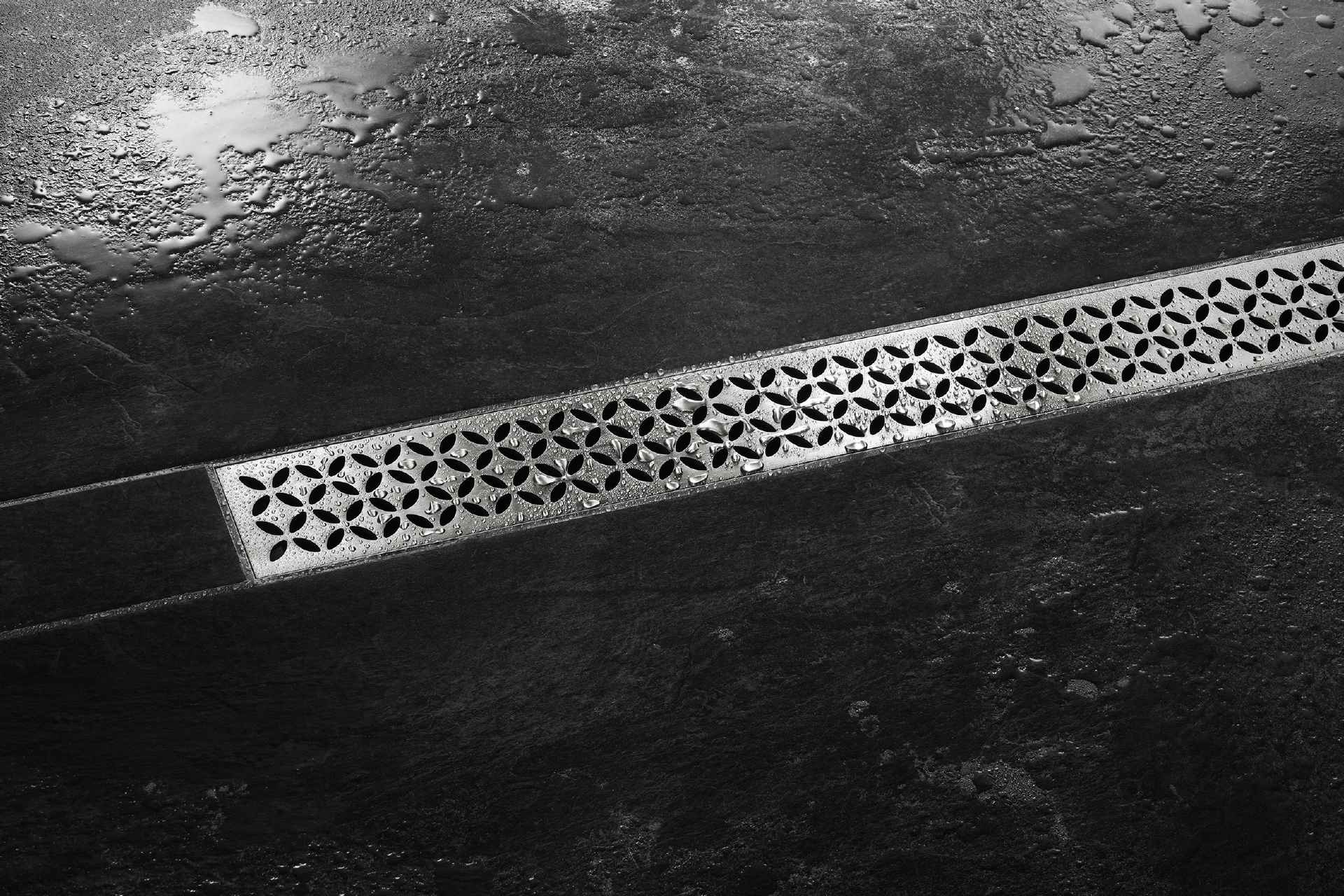 FLORAL, CURVE and PURE are elegant design variants for the covers that are part of the Schlüter-KERDI-LINE-STYLE product range together with the matching contour frames. They are a true eye-catcher in floor-level showers. The slim contour frame can be seamlessly adjusted to coverings in heights of 6 to 18 mm. The grate and frame set made of brushed stainless steel matches the KERDI-LINE channel body and is available in various lengths from 50 cm to 120 cm.
