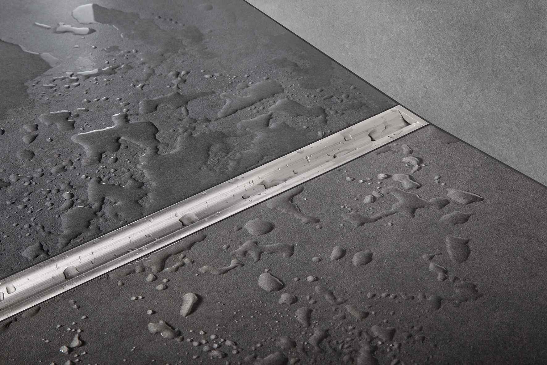 The COVE and WAVE drainage profiles in the brushed stainless steel V4A version (material no. 1.4404 = AISI 316L) are particularly suited for applications that, in addition to heavy mechanical stresses, require resistance to chemicals such as acidic or alkaline media and detergents. Areas of application include bathrooms in dwellings, nursing homes, hotels and schools and also public washroom and shower facilities. Even stainless steel is not resistant to all chemical stresses, and may be affected e.g. by hydrochloric or hydrofluoric acid and some chloride and brine concentrations. In certain cases, this also applies to seawater swimming pools. Suitability for specific anticipated stresses should therefore be clarified in advance.