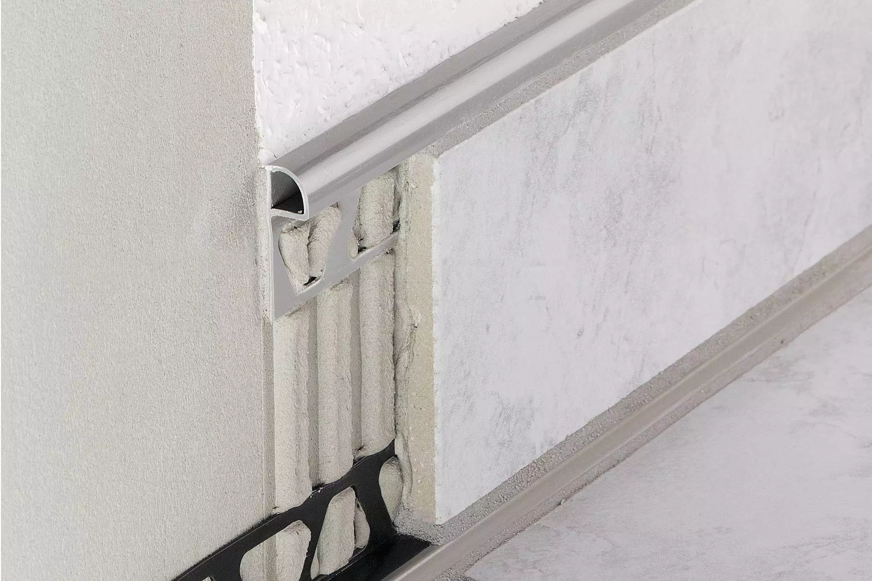 Schlüter-RONDEC-PRG is a decorative profile made of coloured PVC for creating symmetrically rounded external corners in tile coverings and finished edges of tiled skirtings and coverings. In addition to their decorative effect, RONDEC-PRG profiles also offer reliable edge protection against mechanical impact for the tiles in the edge area.