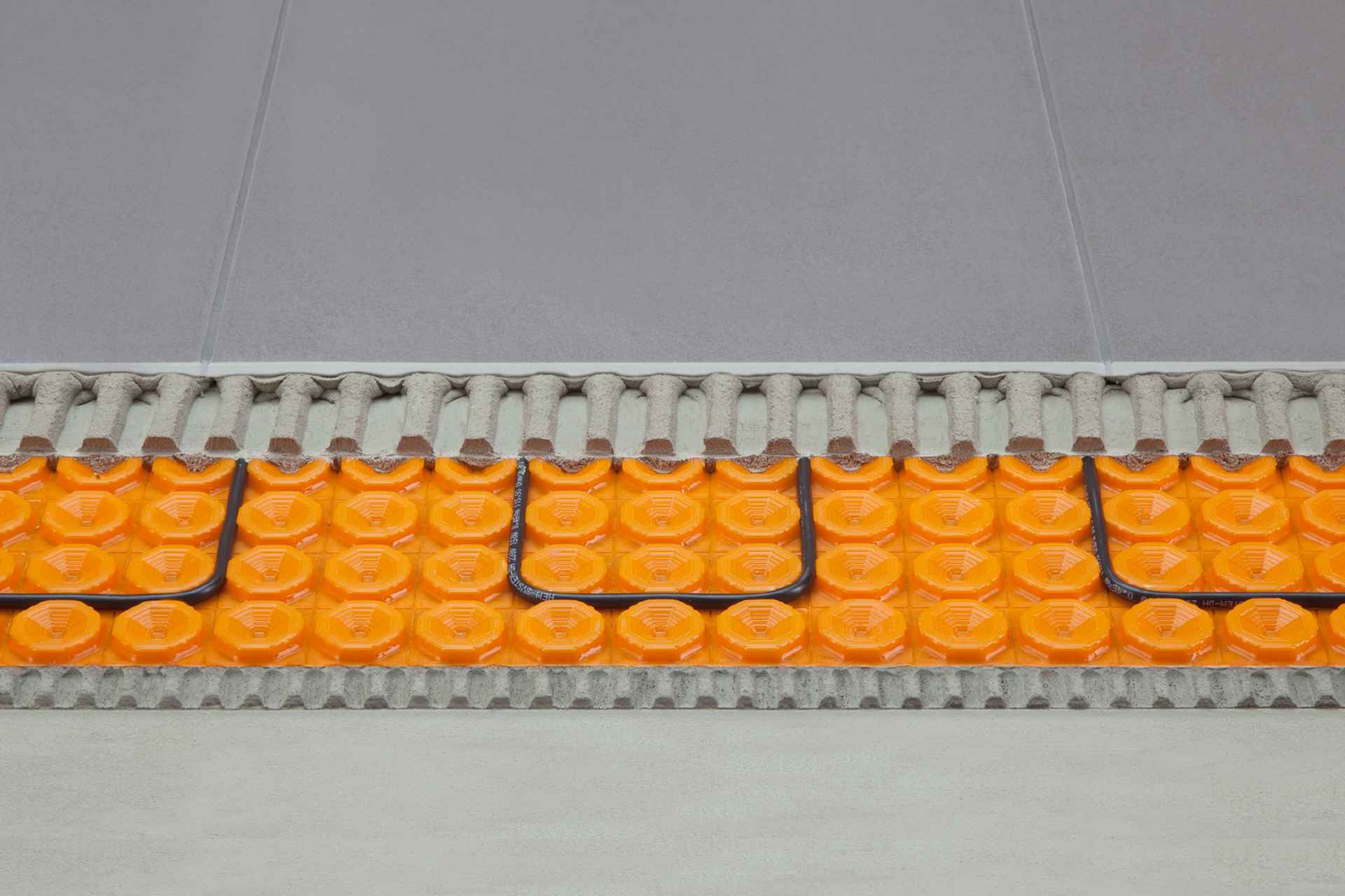 For a faster heat-up response on unheated screed assemblies, we recommend using DITRA-HEAT-DUO for its thermal separation function or Schlüter-KERDI-BOARD as an insulation layer (see data sheet 12.1).