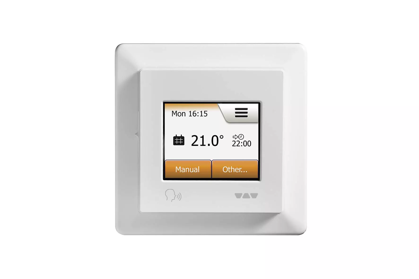 Schlüter-DITRA-HEAT-E-R6 is a smart all-in-one thermostat for controlling floor and wall coverings that are electrically heated with Schlüter-DITRA-HEAT-E. It can either be operated manually via the 2” (5.1 cm) touchscreen display, remotely using WiFi in conjunction with our Schlüter-HEAT-CONTROL app or by voice control using an Amazon Alexa or Google Assistant smart home device.