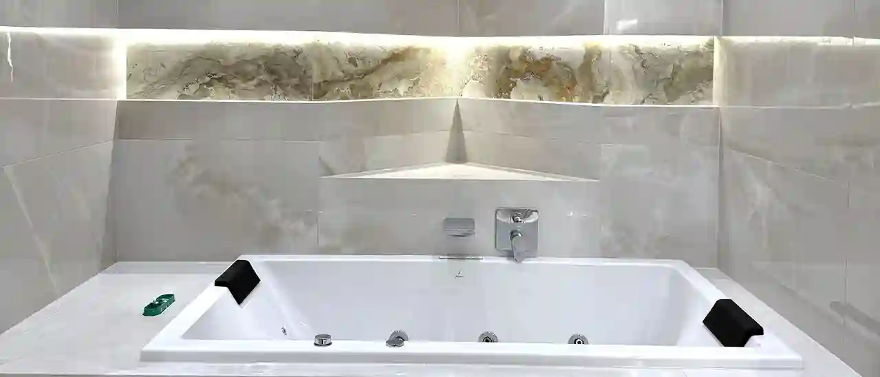 The client was also keen on achieving a visually stunning space while incorporating efficient storage. A variety of KERDI-BOARD-N niches were installed, creating a practical and aesthetically pleasing feature. To complete the en-suite, stunning large-format (1200 x 600 mm) TAU Ceramica Varese tiles were installed, perfectly capturing the luxurious tone the homeowner envisioned.