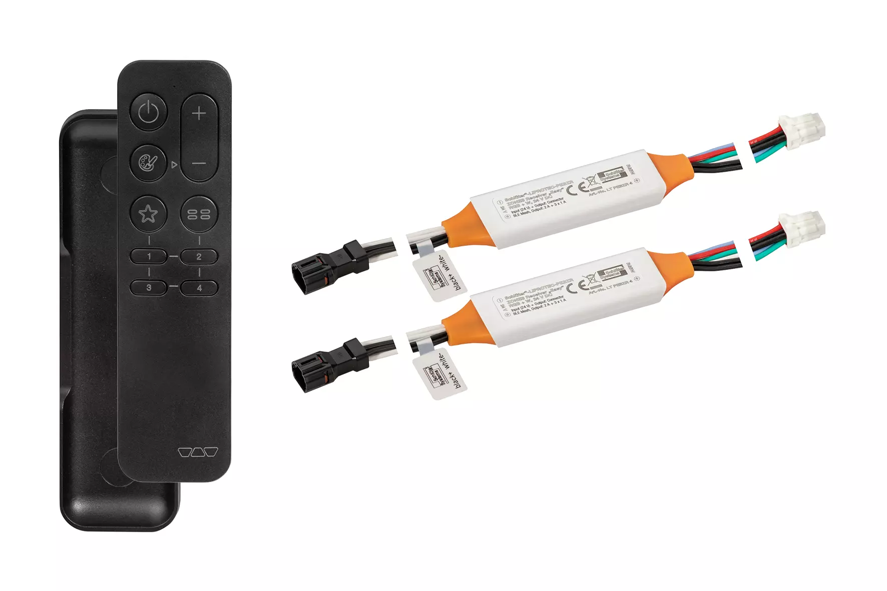 With Schlüter-LIPROTEC-ZONES, you can not only control LED elements individually, but also combine them into zones that can be controlled together. With the innovative Bluetooth Mesh technology, various light sources can be independently operated, including across extended LED assemblies. Control is via the ZONES remote control, the LIPROTEC-ERPZ rotary control or via Bluetooth using the Schlüter-LED-ZONES-CONTROL app, which you can download free of charge from the App Store and Play Store. Using intuitive menu navigation, you can programme and save individual light colours, colour sequences and time controls for automatically running lighting scenarios.