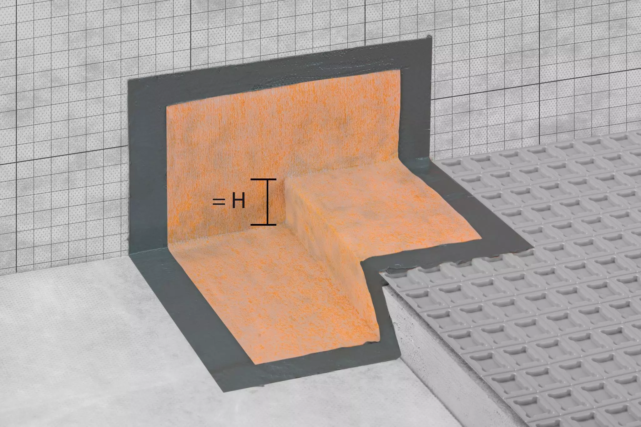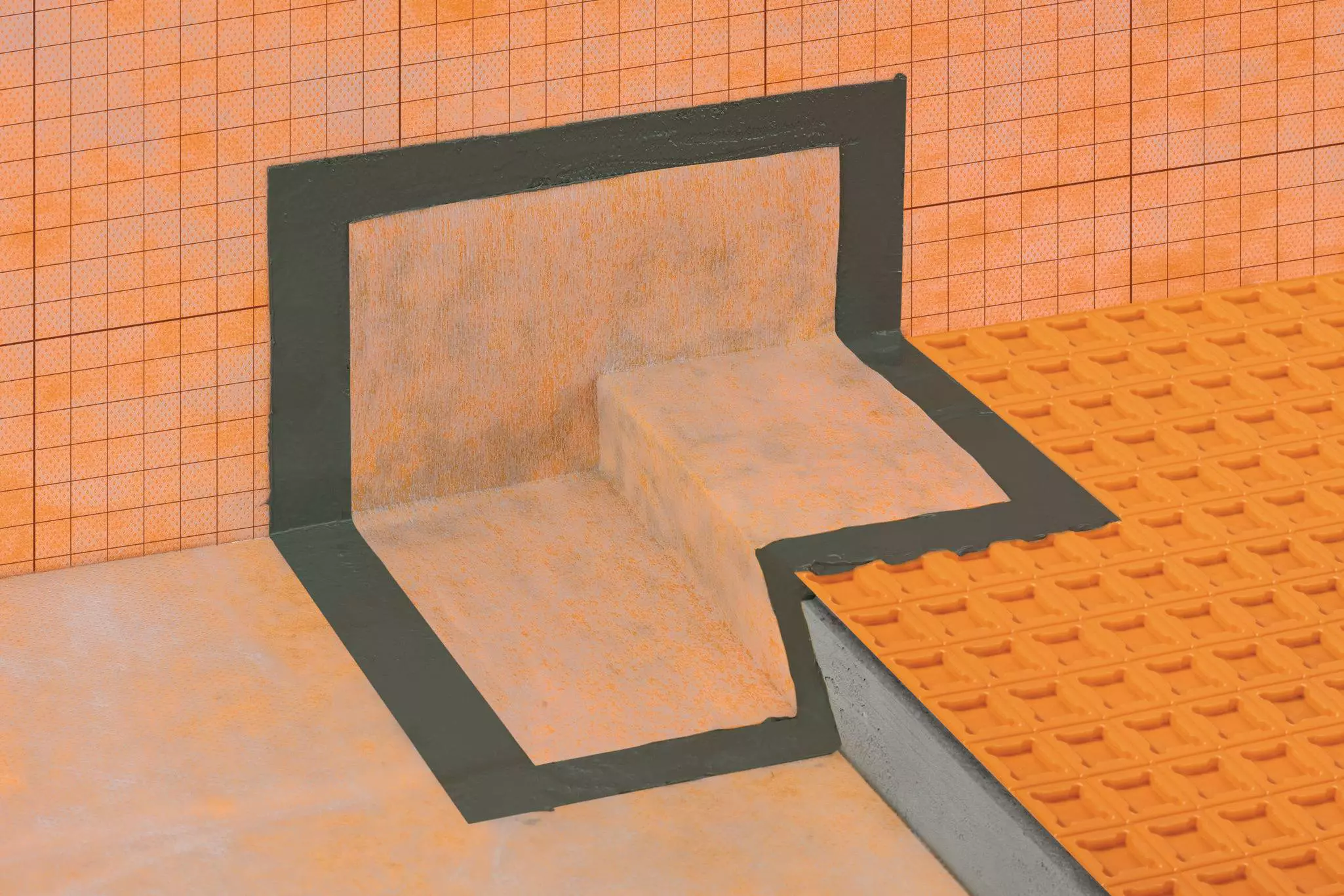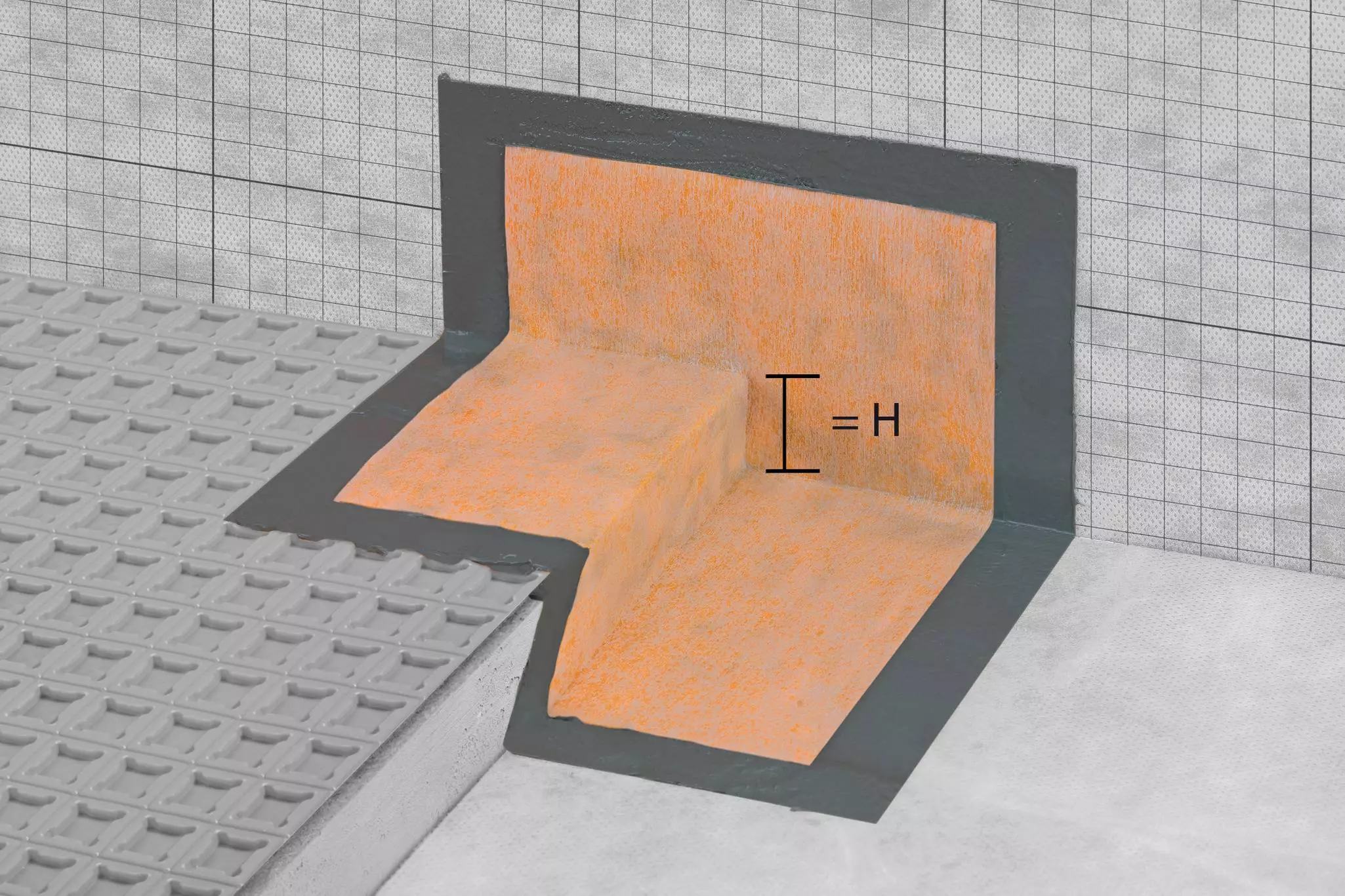 One way of ensuring reliable waterproofing in shower areas, especially in the corners of KERDI-SHOWER, is by adding a KERDI product. KERDI-KERS is a completely seam sealed, prefabricated part for installation on both the left and right side. This clever prefabricated internal corner is available to order in 20 mm and 28 mm heights for uniform waterproofing of showers with side lengths from 80 to 110 cm (KERDI-KERS 20) and from 110 to 150 cm (KERDI-KERS 28).