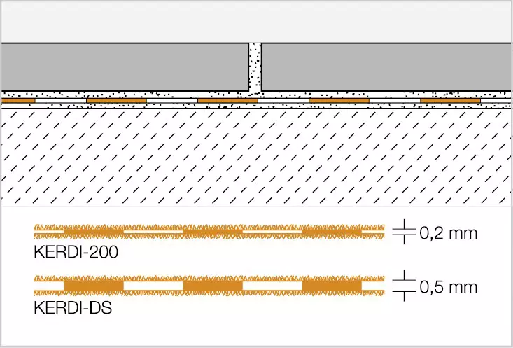 Schlüter-KERDI is a crack-bridging waterproofing membrane of soft polyethylene with a special fleece fabric laminated on both sides for effective anchoring in the tile adhesive.