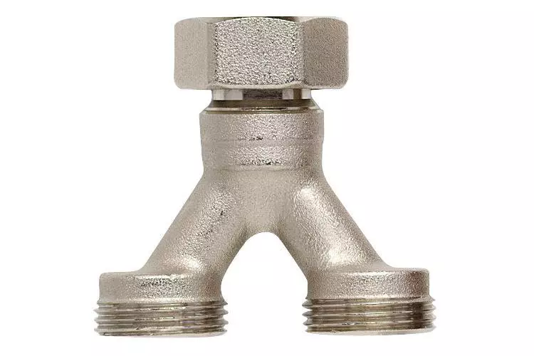 Con Schlüter-BEKOTEC-THERM-DA puede conectar dos circuitos de calefacción a una misma salida del colector. La pieza de conexión doble es de latón niquelado con una tuerca racor cónica de 3/4" (DN 20) y dos salidas cónicas de conexión de 3/4" (DN 20) para la conexión de los tubos calefactores Schlüter-BEKOTEC-THERM-HR con un diámetro de 10, 12, 14 ó 16 mm.