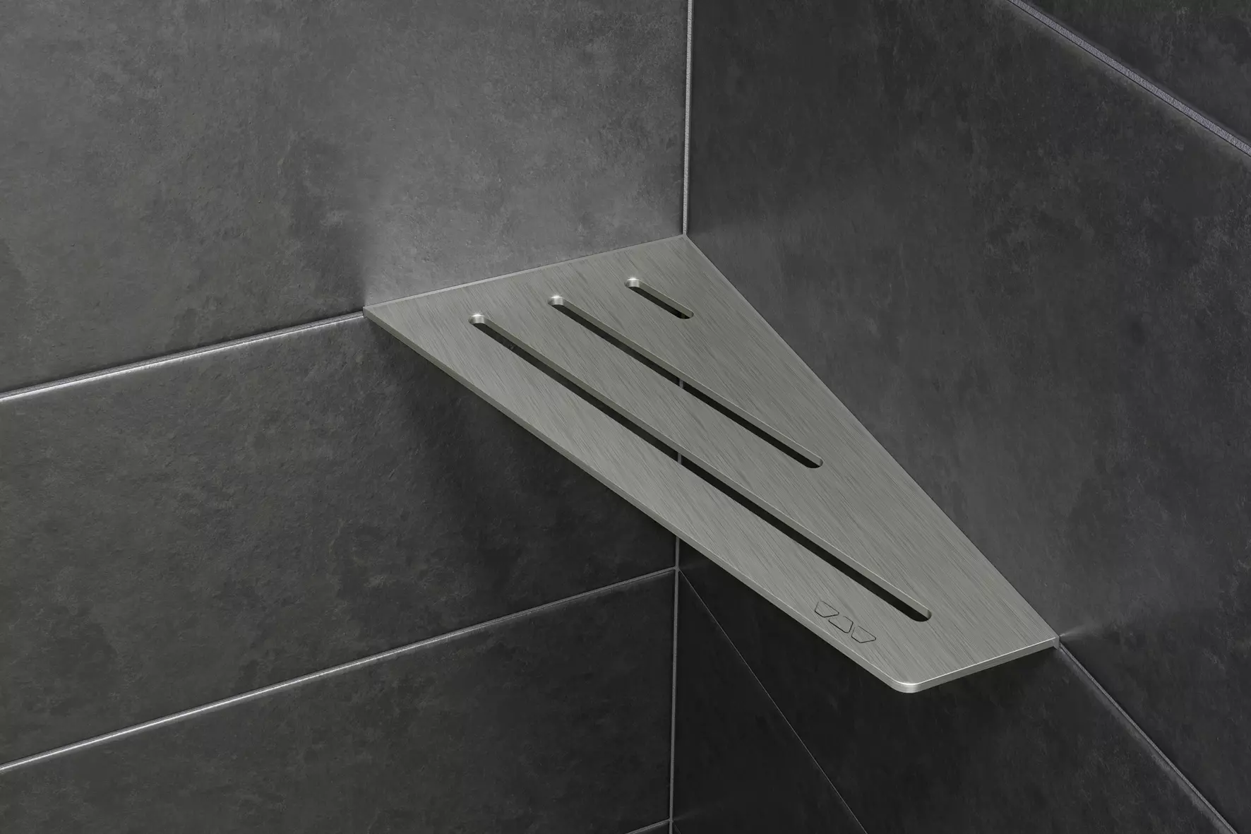 Ya sea de acero inoxidable cepillado o de aluminio texturizado, el estante cuadrado de pared con cantos asimétricos Schlüter-SHELF-E-S3 para instalación en esquina es de gran calidad y estabilidad. Este estante puede instalarse tanto durante el alicatado como después mediante alas de fijación de 2 mm de espesor en las juntas existentes. Esto hace que las perforaciones adicionales o incluso los daños en el alicatado sean cosa del pasado.