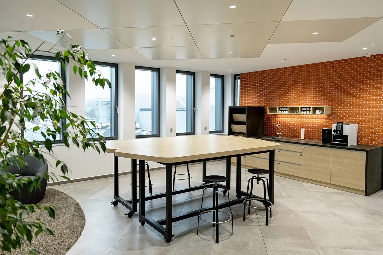 Nos bureaux spacieux et baignés de lumière naturelle créent une atmosphère agréable et ont un effet positif sur la concentration et le bien-être. Travailler à la lumière naturelle réduit la fatigue, améliore l’humeur et permet en outre d’économiser de l’énergie.
