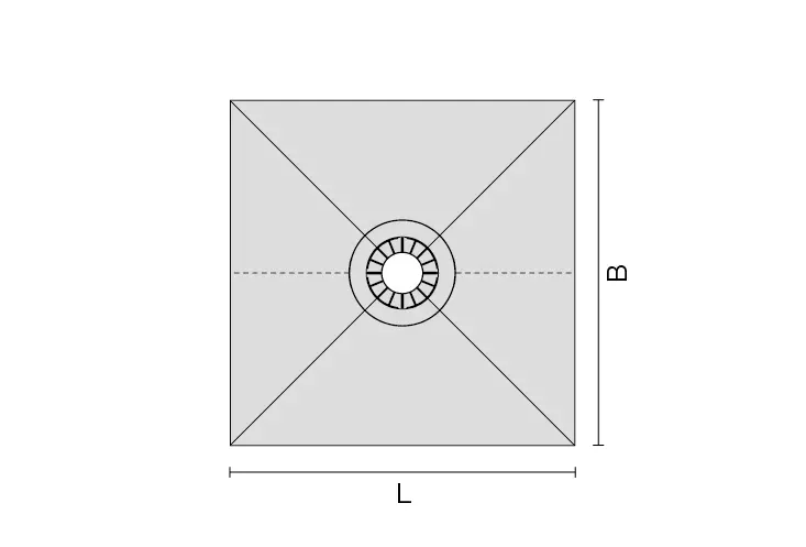 Des dimensions plus petites et/ou intermédiaires peuvent être réalisées tout simplement en découpant les receveurs à l’aide d’un cutter. Veillez à conserver le rapport entre les bords ainsi que la position de l'évacuation.