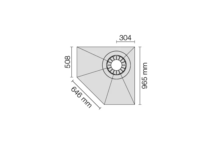 - 96,5 x 96,5 cm (évacuation dans l'angle, forme pentagonale)