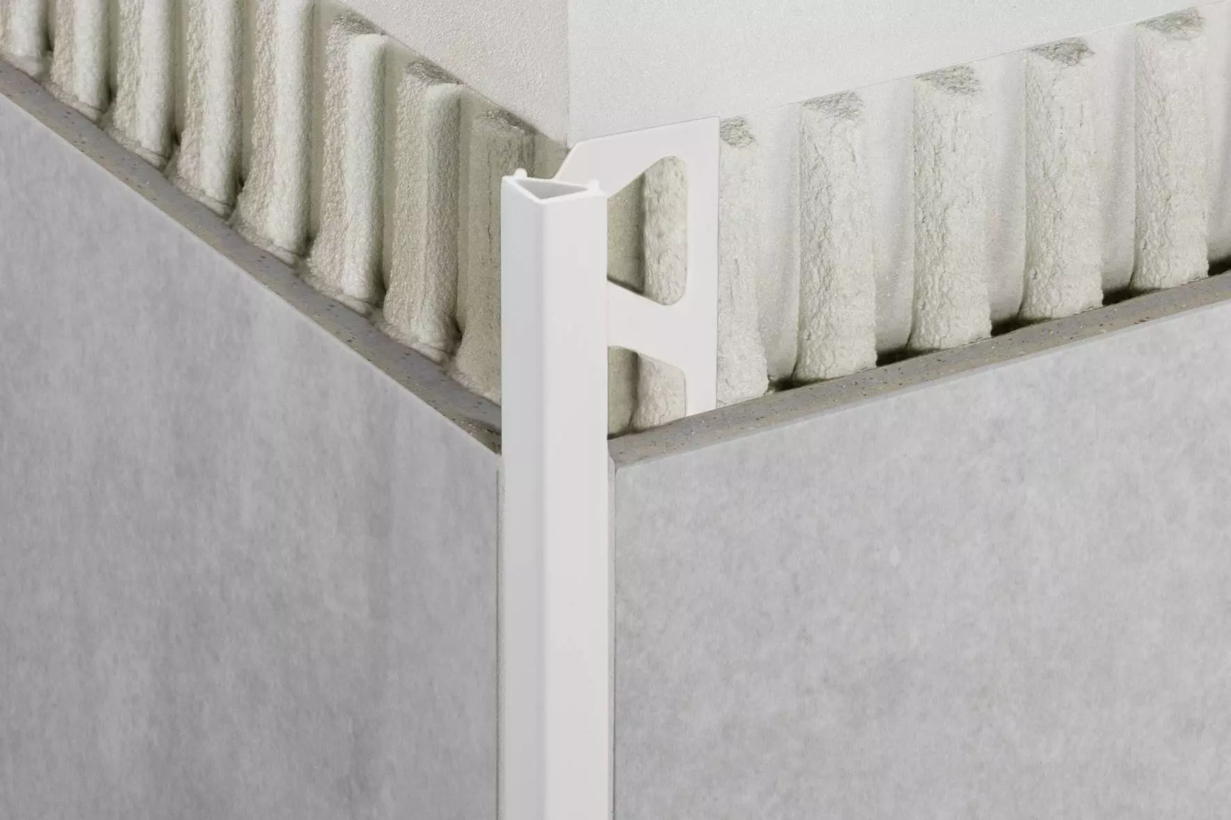 Les profilés Schlüter-QUADEC-PQ (PVC teinté) sont fabriqués en PVC rigide teinté dans la masse et sont insensibles à la torsion ou aux rayures. Le matériau résiste aux UV, mais sa couleur n’étant pas stable à long terme, il ne peut être mis en œuvre à l’extérieur. Ce type de profilé ne peut pas être utilisé comme finition d’angles ou de revêtements lorsque des contraintes mécaniques élevées sont prévues, par exemple au niveau de marches d’escalier ou en finition de sol.