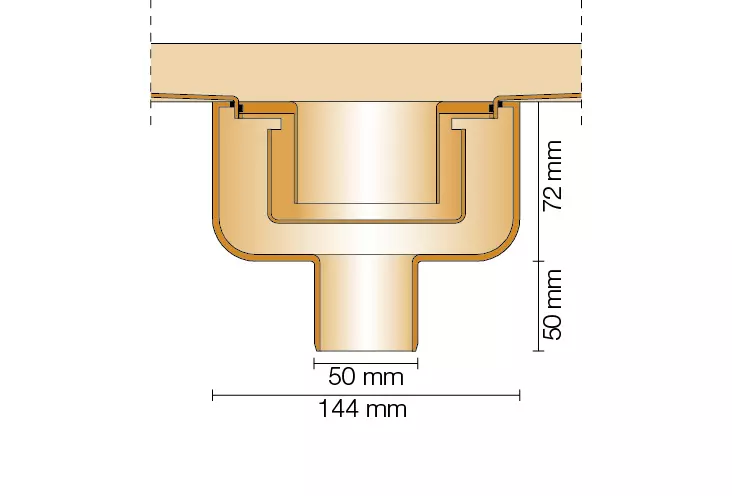 Elle assure le raccordement du corps de caniveau en acier inoxydable V4A à l’étanchéité composite, tant au niveau du sol que des murs.