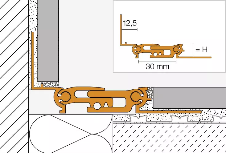 Schlüter-DILEX-BTO est fabriqué en aluminium, et sa possibilité de mise en œuvre doit être déterminée en fonction des contraintes chimiques prévisibles. L’aluminium est sensible aux produits alcalins. En présence d’humidité, les matériaux à base de ciment présentent une alcalinité qui peut, selon la concentration et la durée de contact, corroder l’aluminium (formation d’hydroxyde d’aluminium). Il convient donc d’éliminer immédiatement tout résidu de mortier-colle ou de mortier-joint au niveau des surfaces visibles (et de ne pas recouvrir d'un film les revêtements fraîchement posés).
