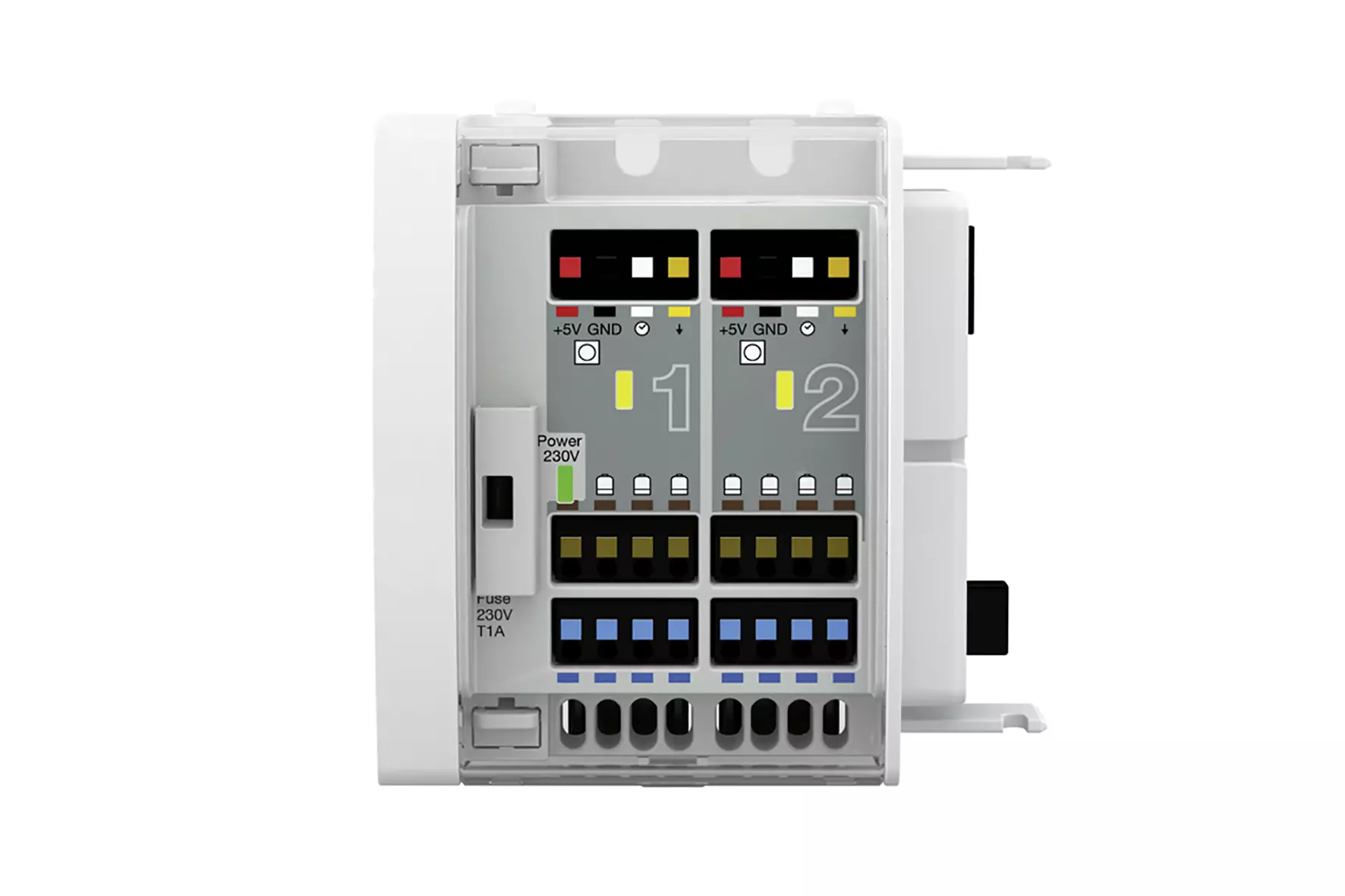 Az üzemi állapotot, valamint a feszültségellátás állapotát egyértelműen leolvashatja a LED-ekről. A helyiségérzékelők (5 V, SELV) és az állítóművek (230 V-os) feszültségellátását a „Control” alapmodul (BEKOTEC-THERM-EBC) biztosítja.