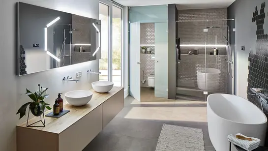 Ovviamente, la nuova oasi di benessere doveva essere anche bella, moderna e di stile. La famiglia Hahn aveva molti desideri in merito: una doccia a filo pavimento, un riscaldamento a pavimento a risparmio energetico, un lavabo personalizzato, un pratico vano portabiancheria, una bella illuminazione di design e molto altro ancora.